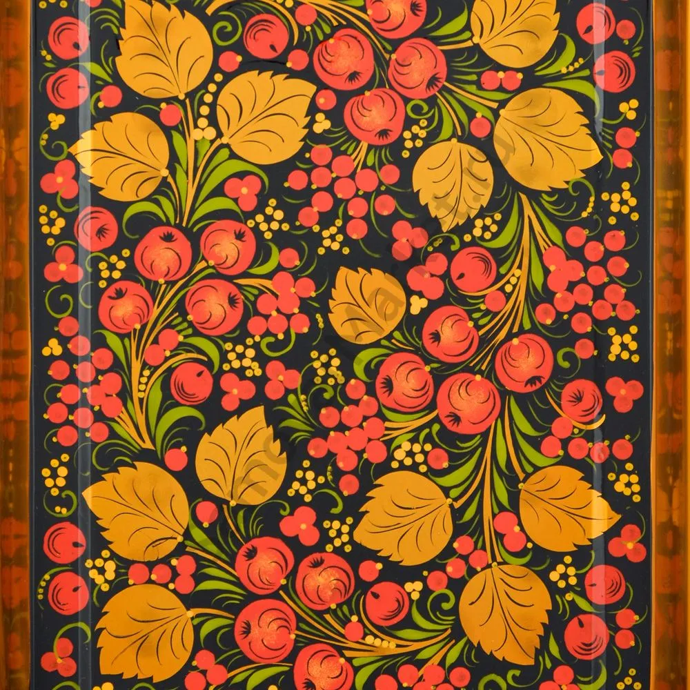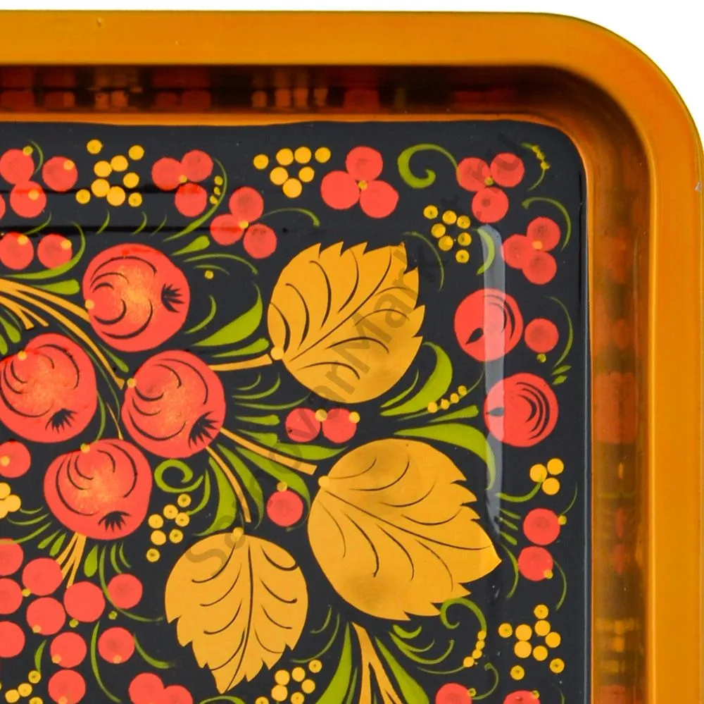 Поднос для самовара прямоугольный с художественной росписью «Хохлома с яблочками»
