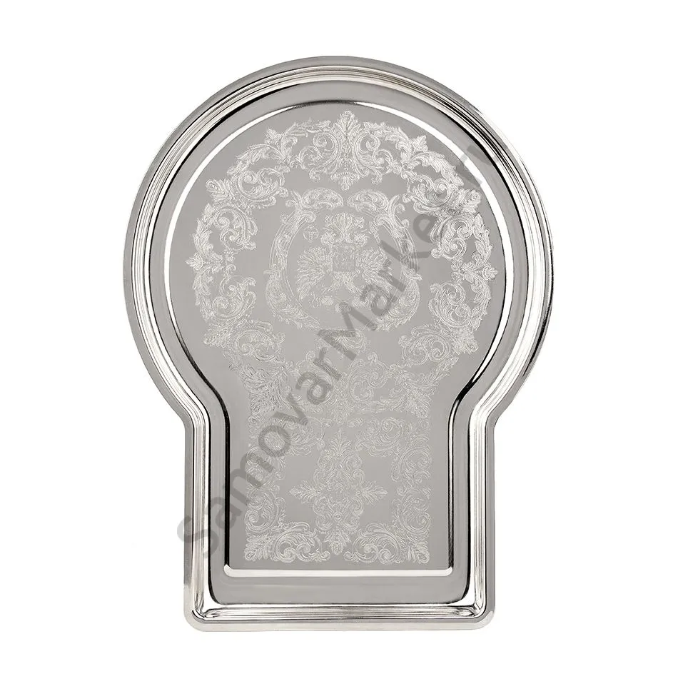 Поднос для самовара формы «Замочная скважина» с гравировкой, серебристый