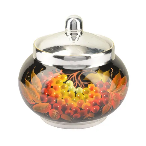 Сахарница с художественной росписью «Осенний виноград в серебре»