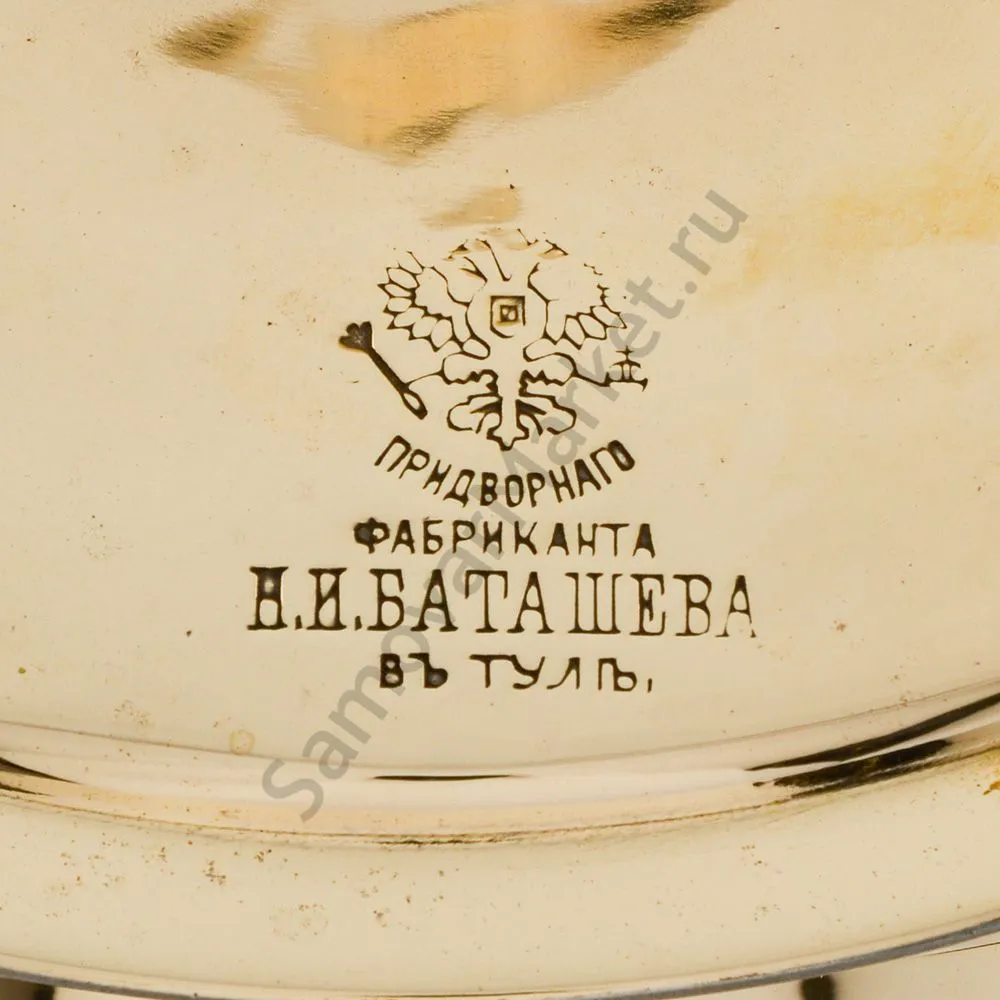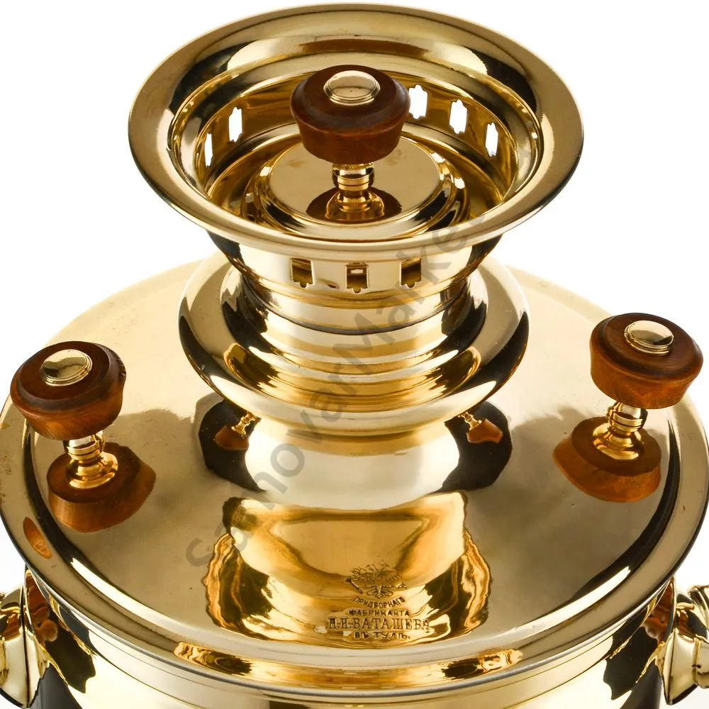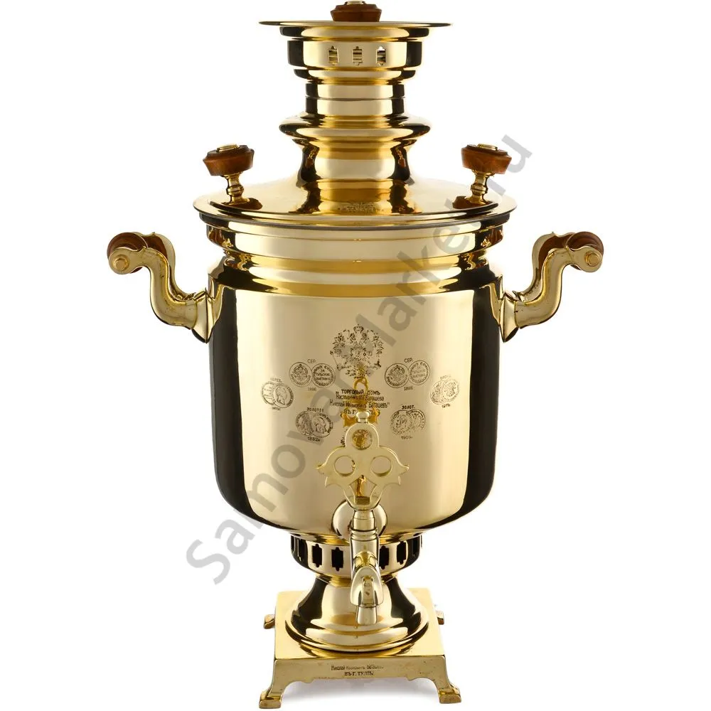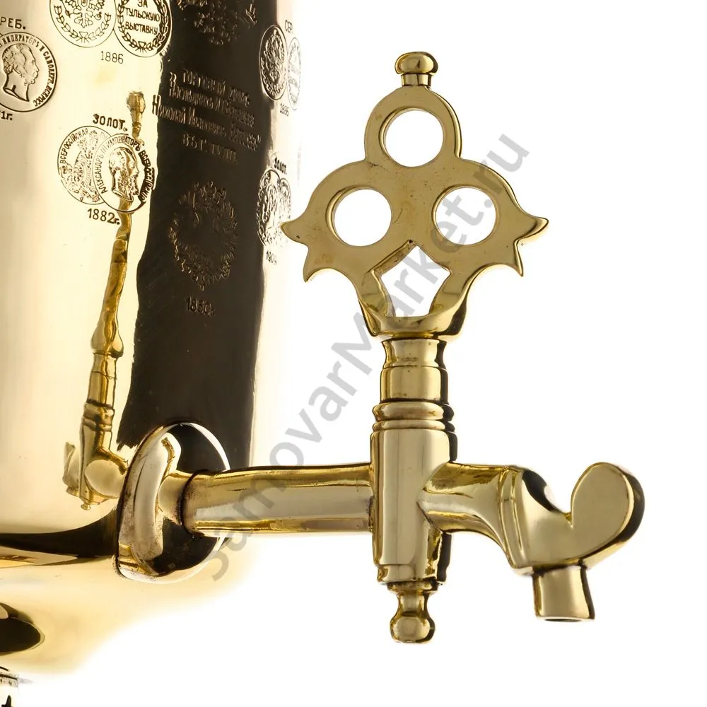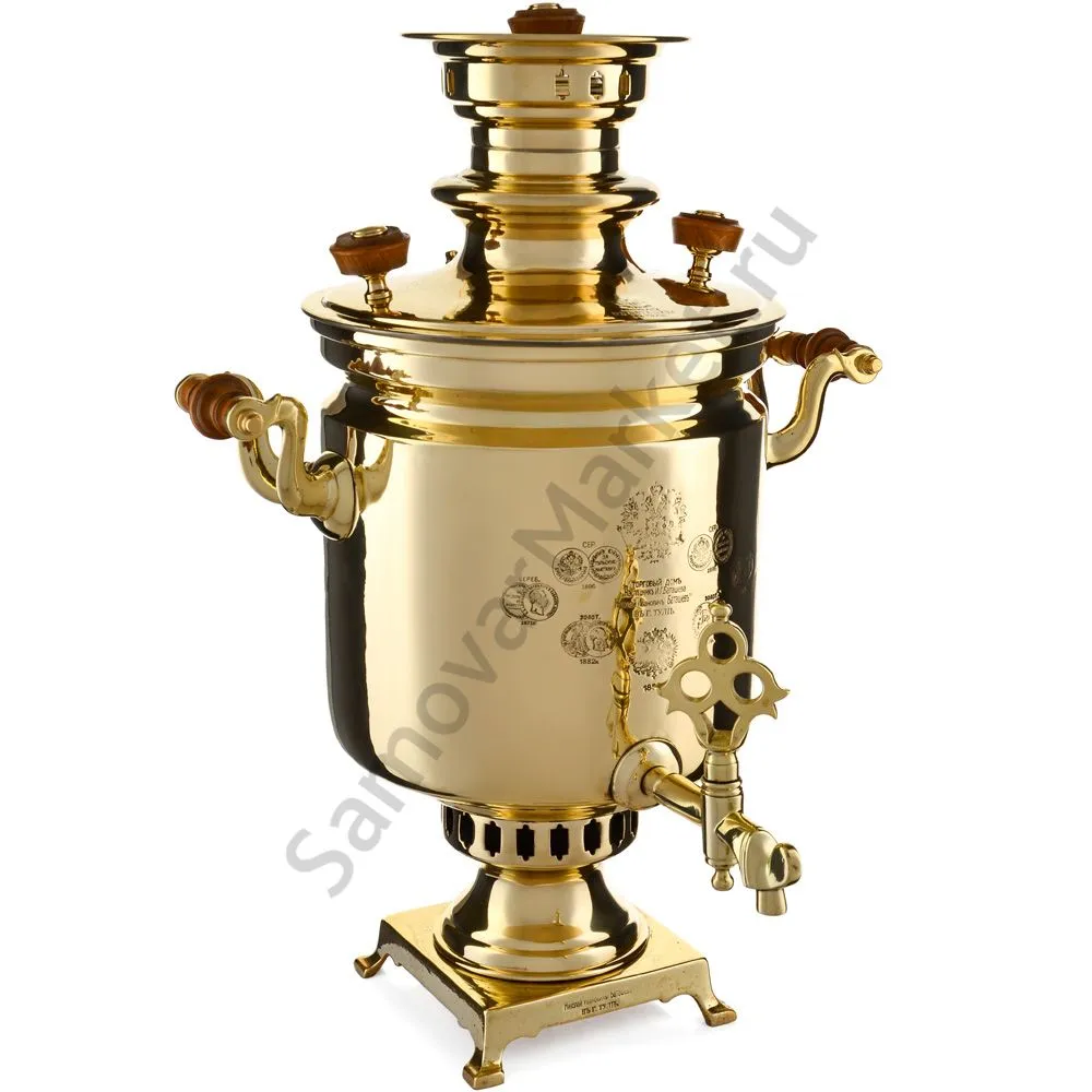 Самовар антикварный на дровах 6 литров формы «Банка» Н.И. Баташева с медалями, золотой