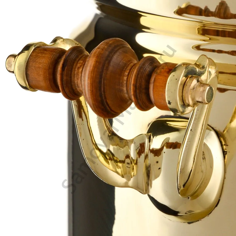 Ручки и хватки изготовлены из натурального дерева – берёзы, устойчивой к перепаду температур. Дерево окрашено специальными красками с эффектом благородной старины. Полностью готов к применению.Эта модель изготовлена из латуни. Рекомендуется полировка специальными средствами для поддержания блеска. Сделано в Туле.