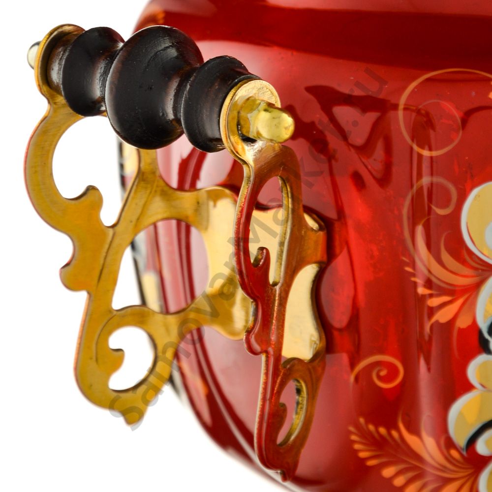 Ручки и хватки изготовлены из натурального дерева – берёзы, устойчивой к перепаду температур. Фурнитура роскошного глубокого каштанового цвета элитного красного дерева. Полностью готов к применению. Художественная роспись выполнена вручную специальными жаропрочными красками. Каждое изделие немного уникально и придает чаепитию особую красочность и даже праздничность. Сделано в Туле.