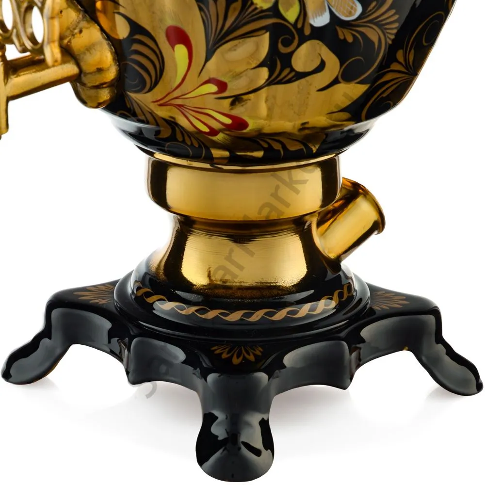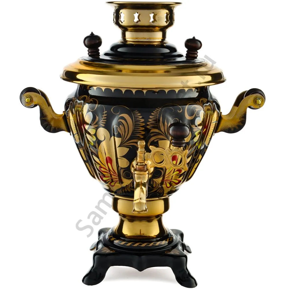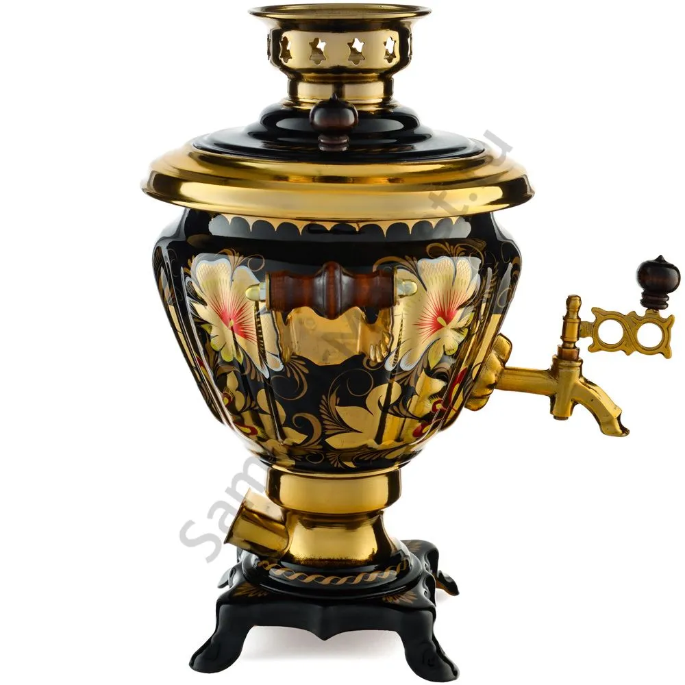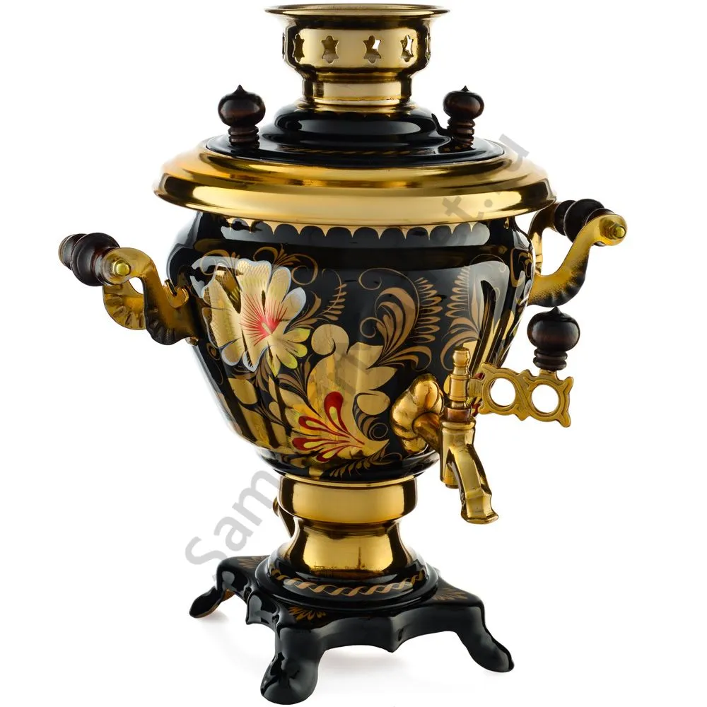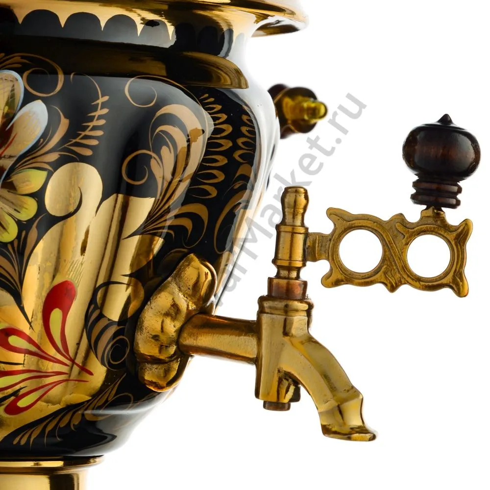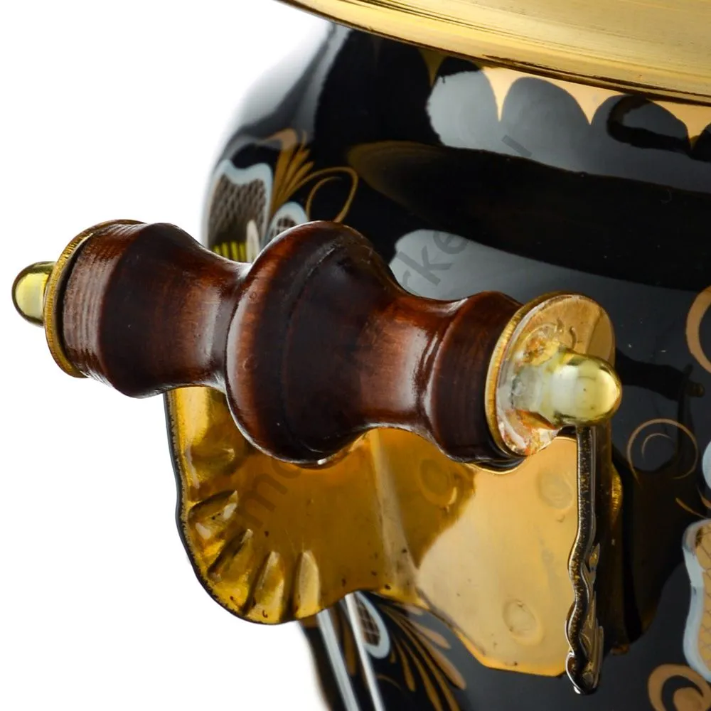 Ручки и хватки изготовлены из натурального дерева – берёзы, устойчивой к перепаду температур. Фурнитура роскошного глубокого каштанового цвета элитного красного дерева. Полностью готов к применению. Художественная роспись выполнена вручную специальными жаропрочными красками. Каждое изделие немного уникально и придает чаепитию особую красочность и даже праздничность. Сделано в Туле.