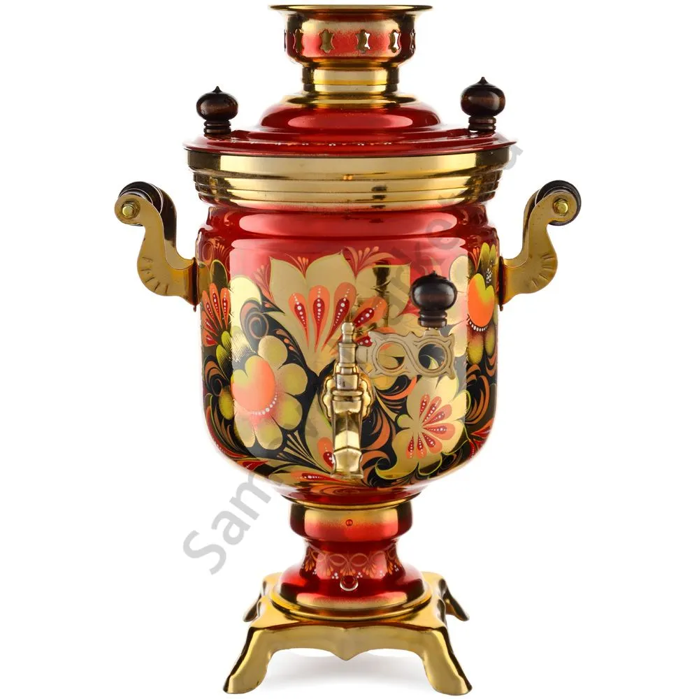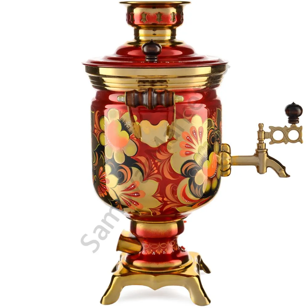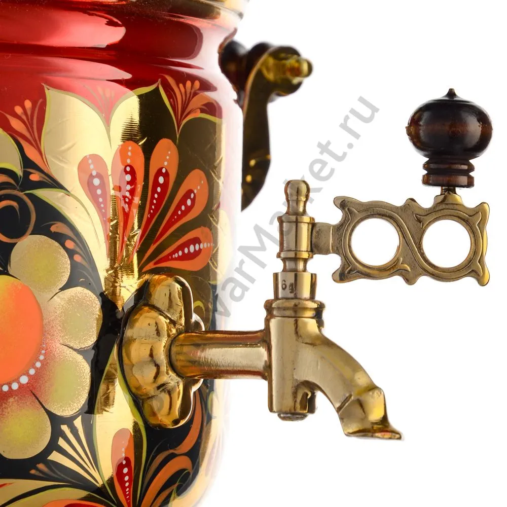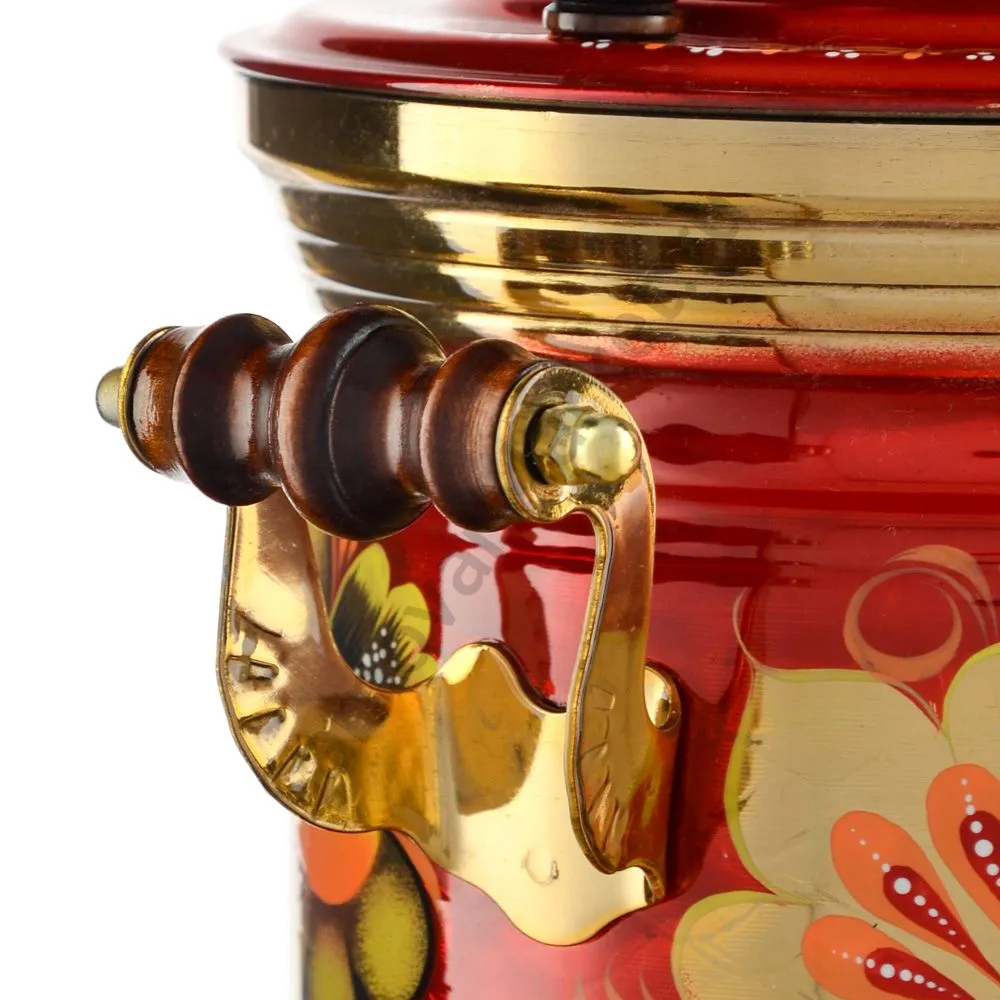 Ручки и хватки изготовлены из натурального дерева – берёзы, устойчивой к перепаду температур. Фурнитура роскошного глубокого каштанового цвета элитного красного дерева. Полностью готов к применению. Художественная роспись выполнена вручную специальными жаропрочными красками. Каждое изделие немного уникально и придает чаепитию особую красочность и даже праздничность. Сделано в Туле.