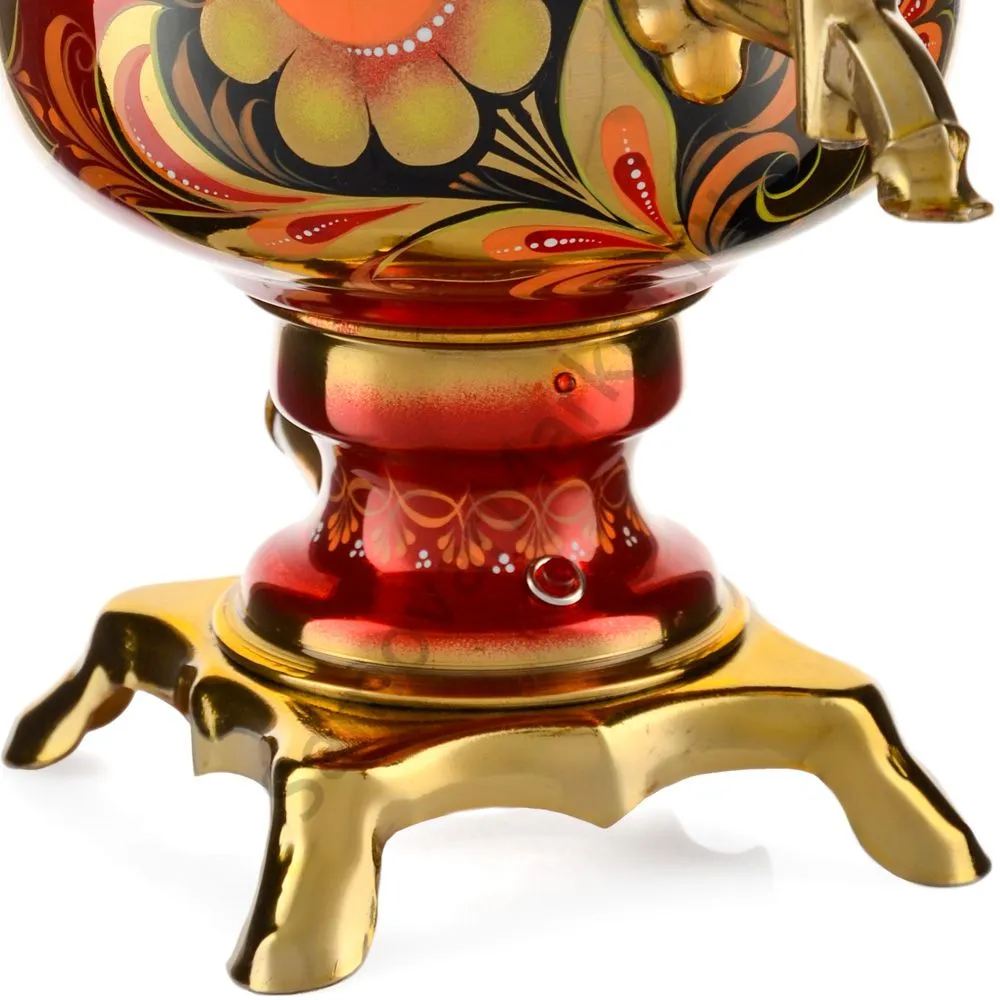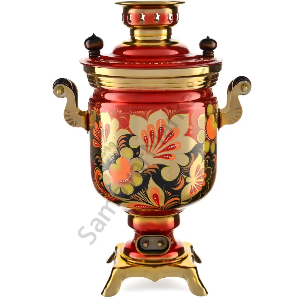 Работает от сети 220 V. К самовару прилагается шнур, красочная упаковка и инструкция по эксплуатации.