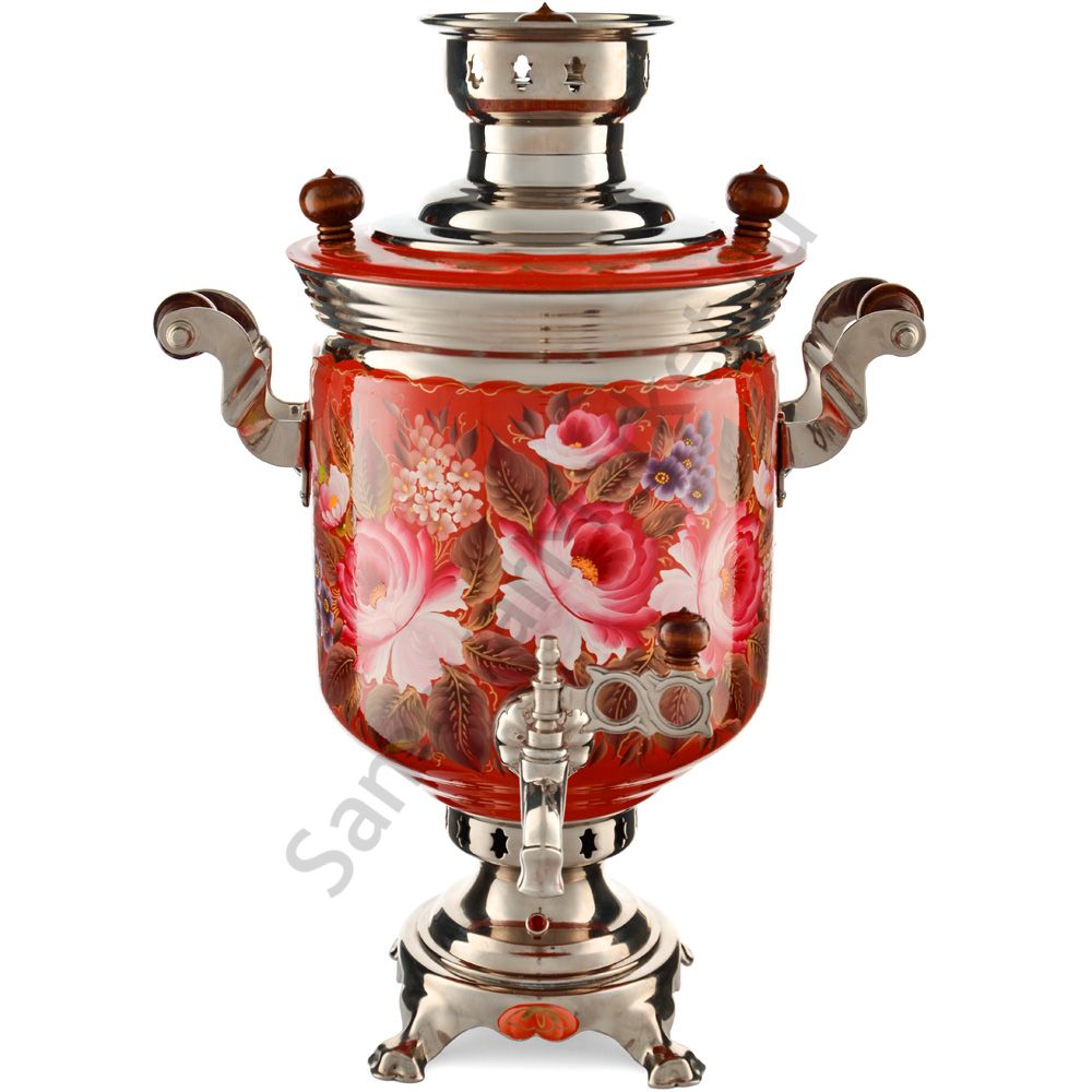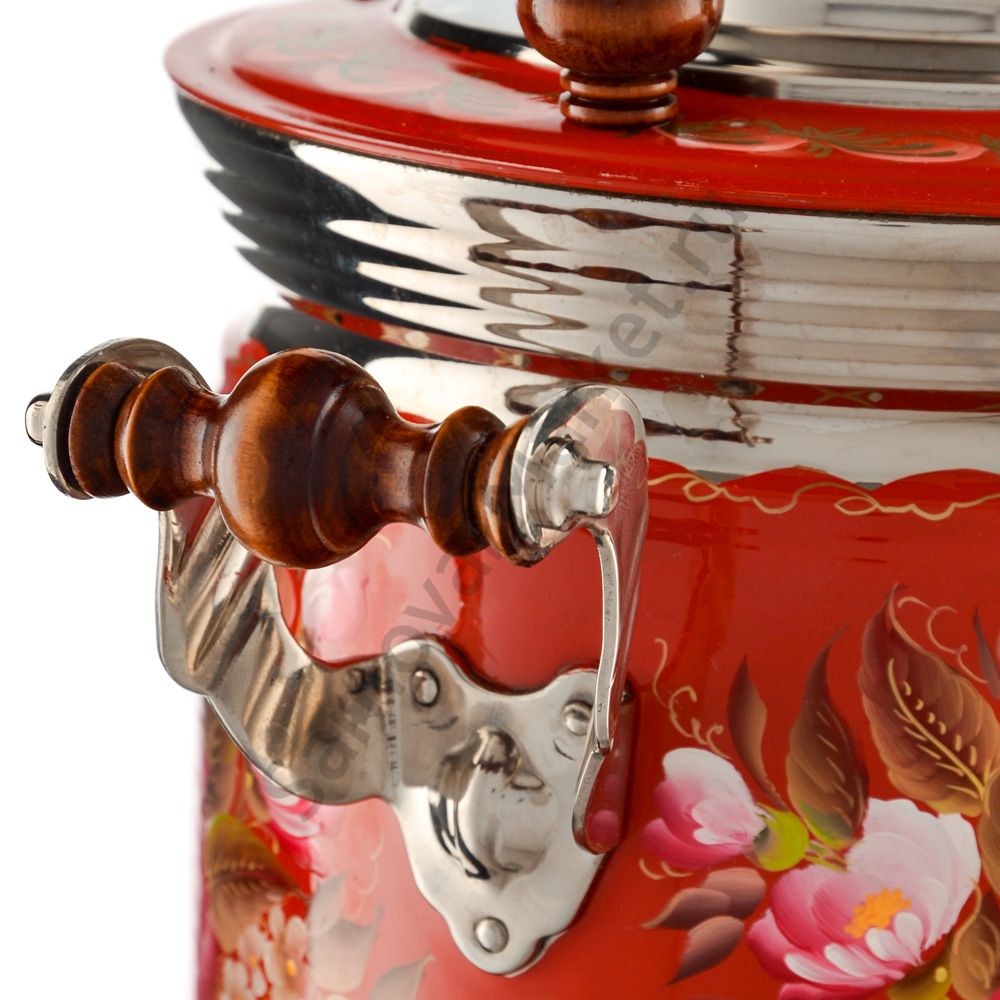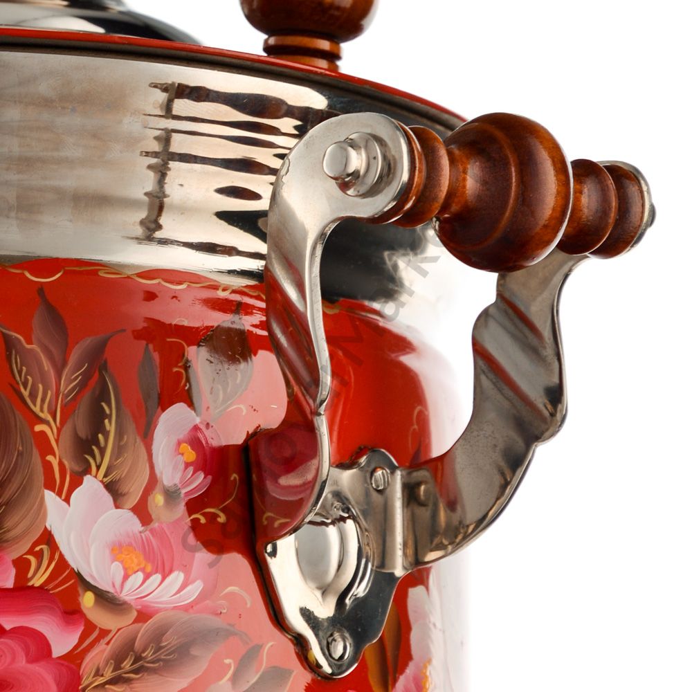 Ручки и хватки изготовлены из натурального дерева – берёзы, устойчивой к перепаду температур. Фурнитура роскошного глубокого каштанового цвета элитного красного дерева. Полностью готов к применению. Художественная роспись выполнена вручную специальными жаропрочными красками. Каждое изделие немного уникально и придает чаепитию особую красочность и даже праздничность. Сделано в Туле.