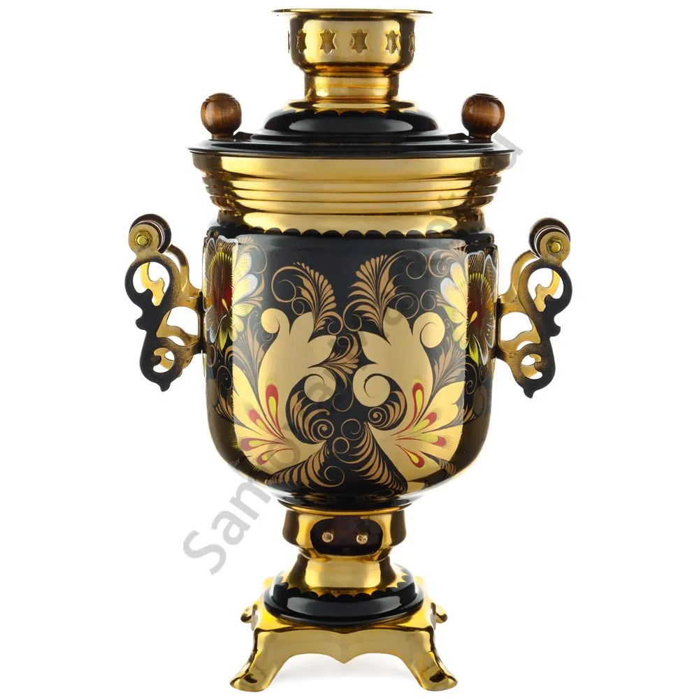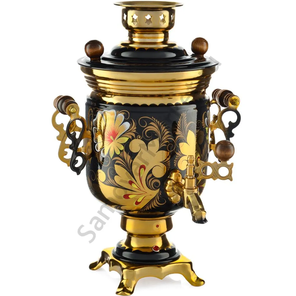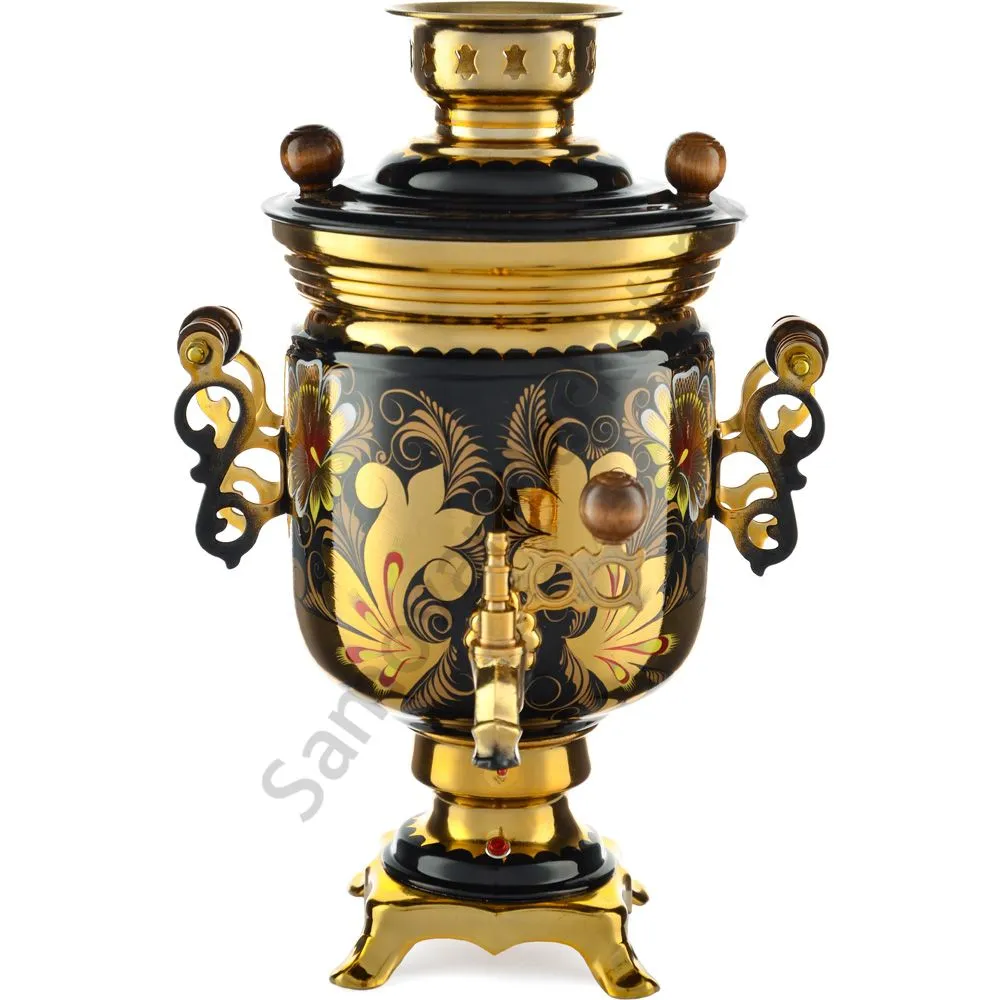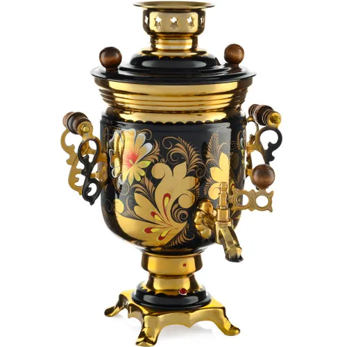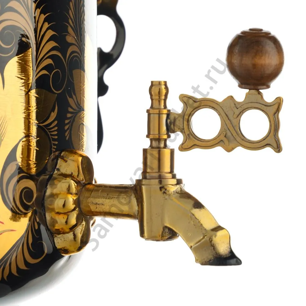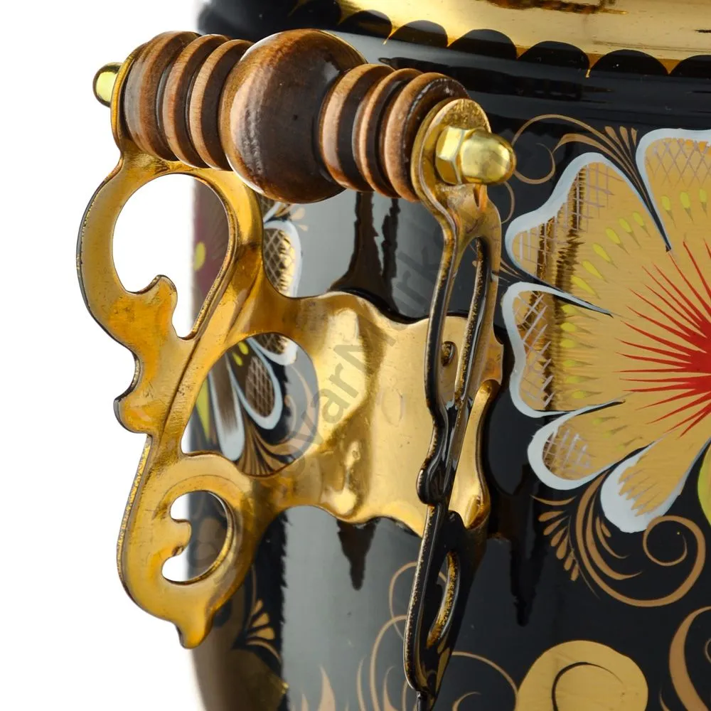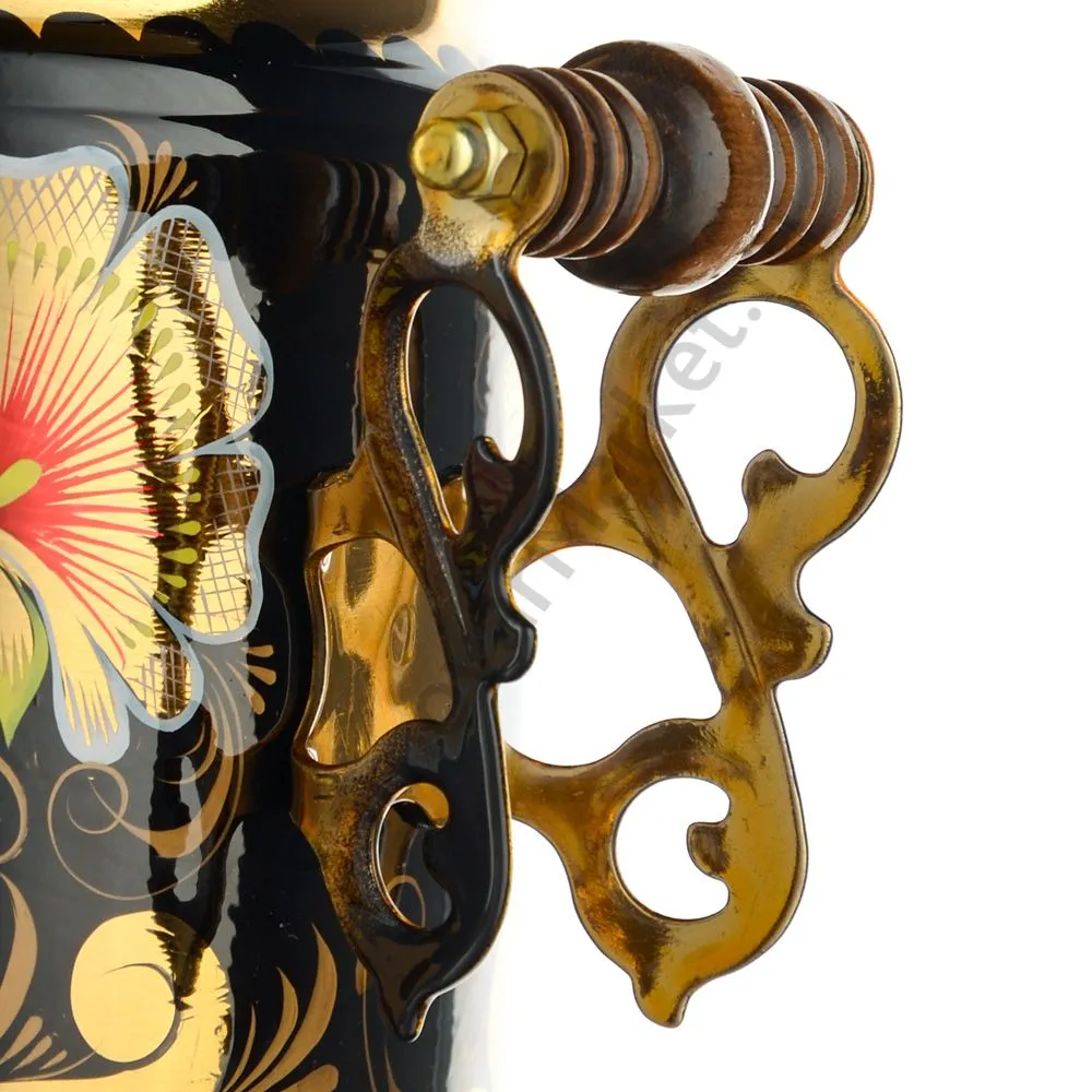 Ручки и хватки изготовлены из натурального дерева – берёзы, устойчивой к перепаду температур. Фурнитура роскошного глубокого каштанового цвета элитного красного дерева. Полностью готов к применению. Художественная роспись выполнена вручную специальными жаропрочными красками. Каждое изделие немного уникально и придает чаепитию особую красочность и даже праздничность. Сделано в Туле.