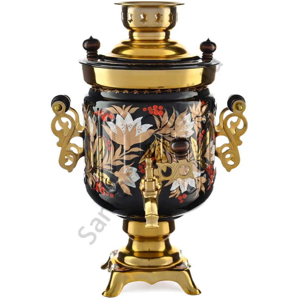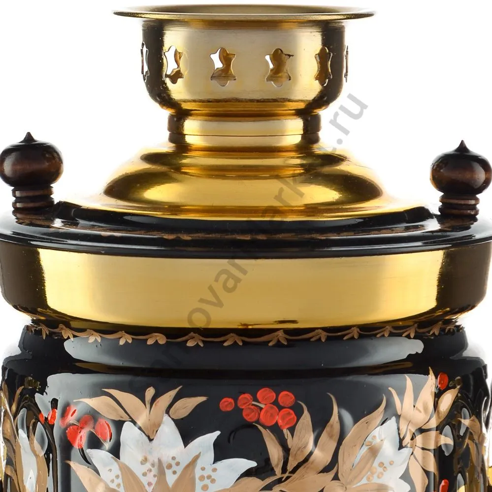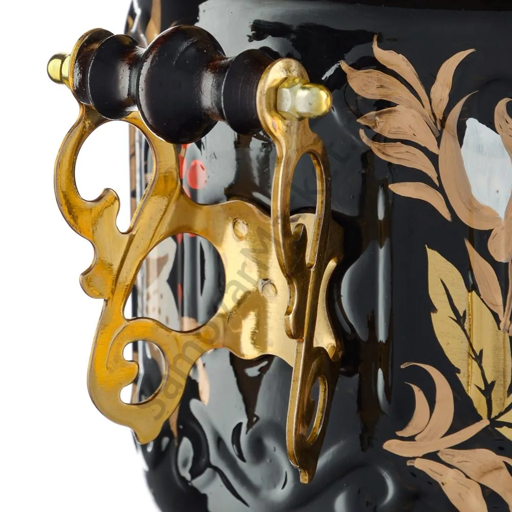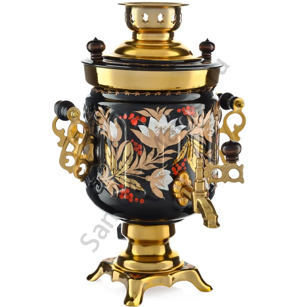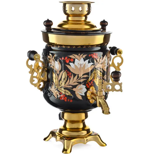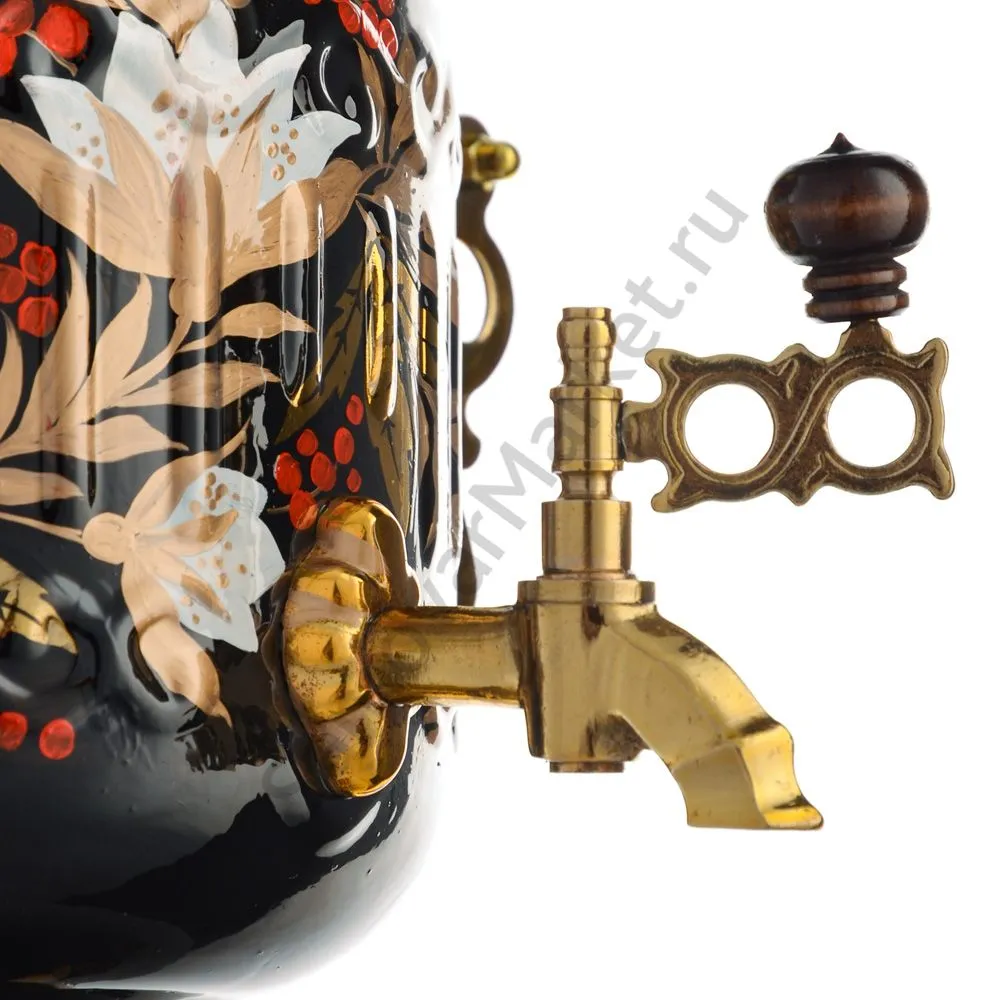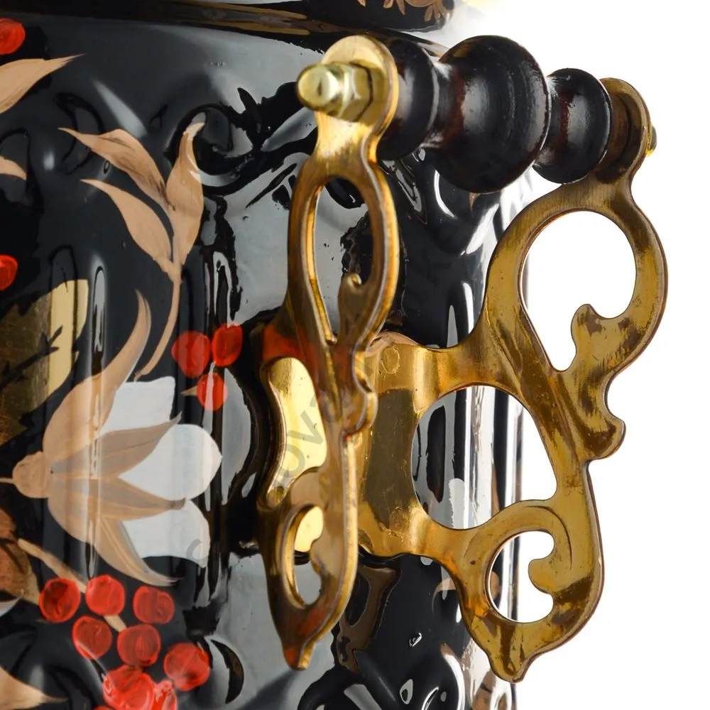 Ручки и хватки изготовлены из натурального дерева – берёзы, устойчивой к перепаду температур. Фурнитура роскошного глубокого каштанового цвета элитного красного дерева. Полностью готов к применению. Художественная роспись выполнена вручную специальными жаропрочными красками. Каждое изделие немного уникально и придает чаепитию особую красочность и даже праздничность. Сделано в Туле.