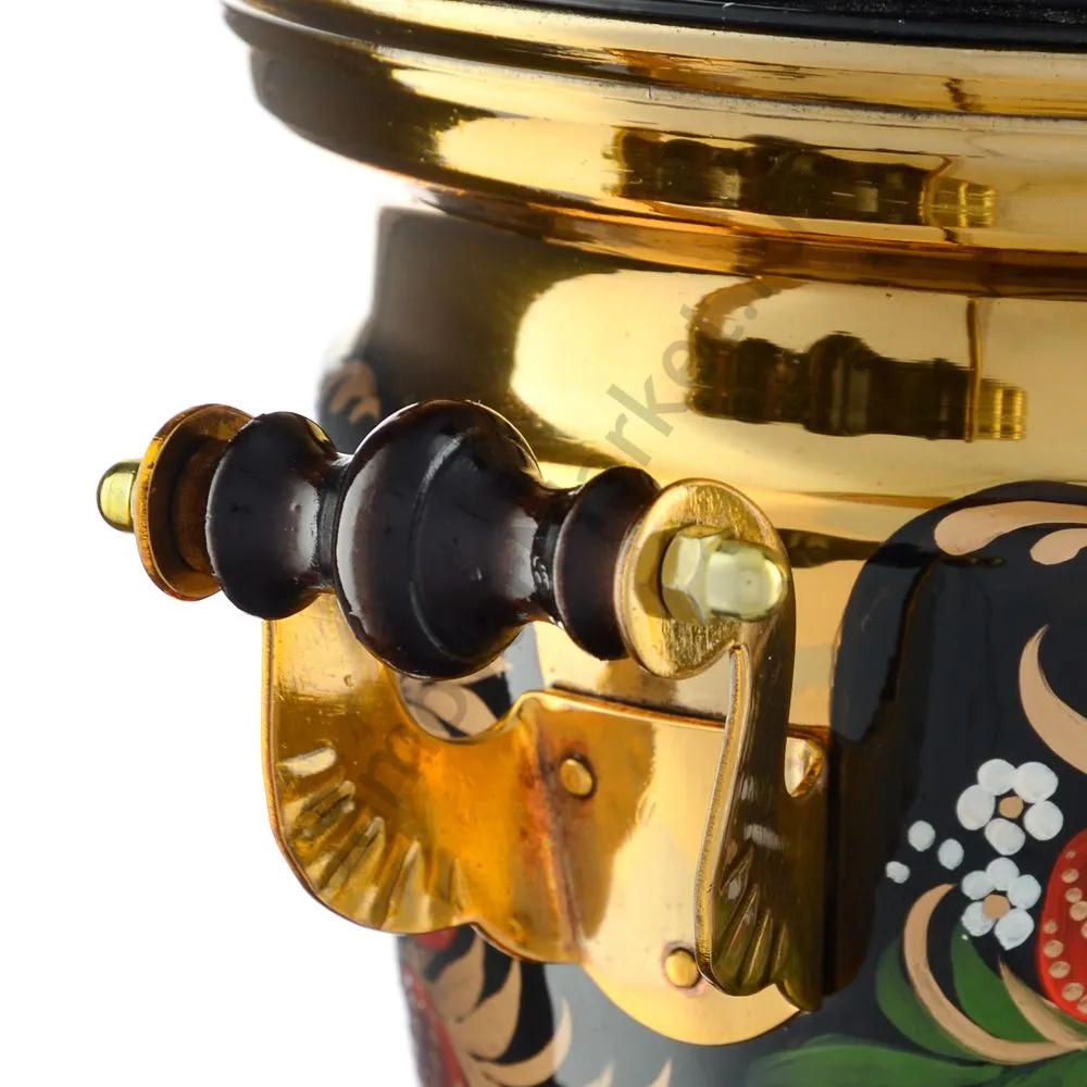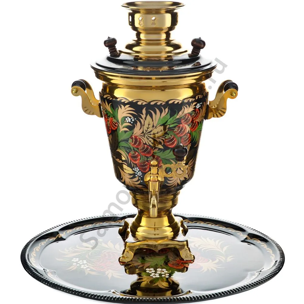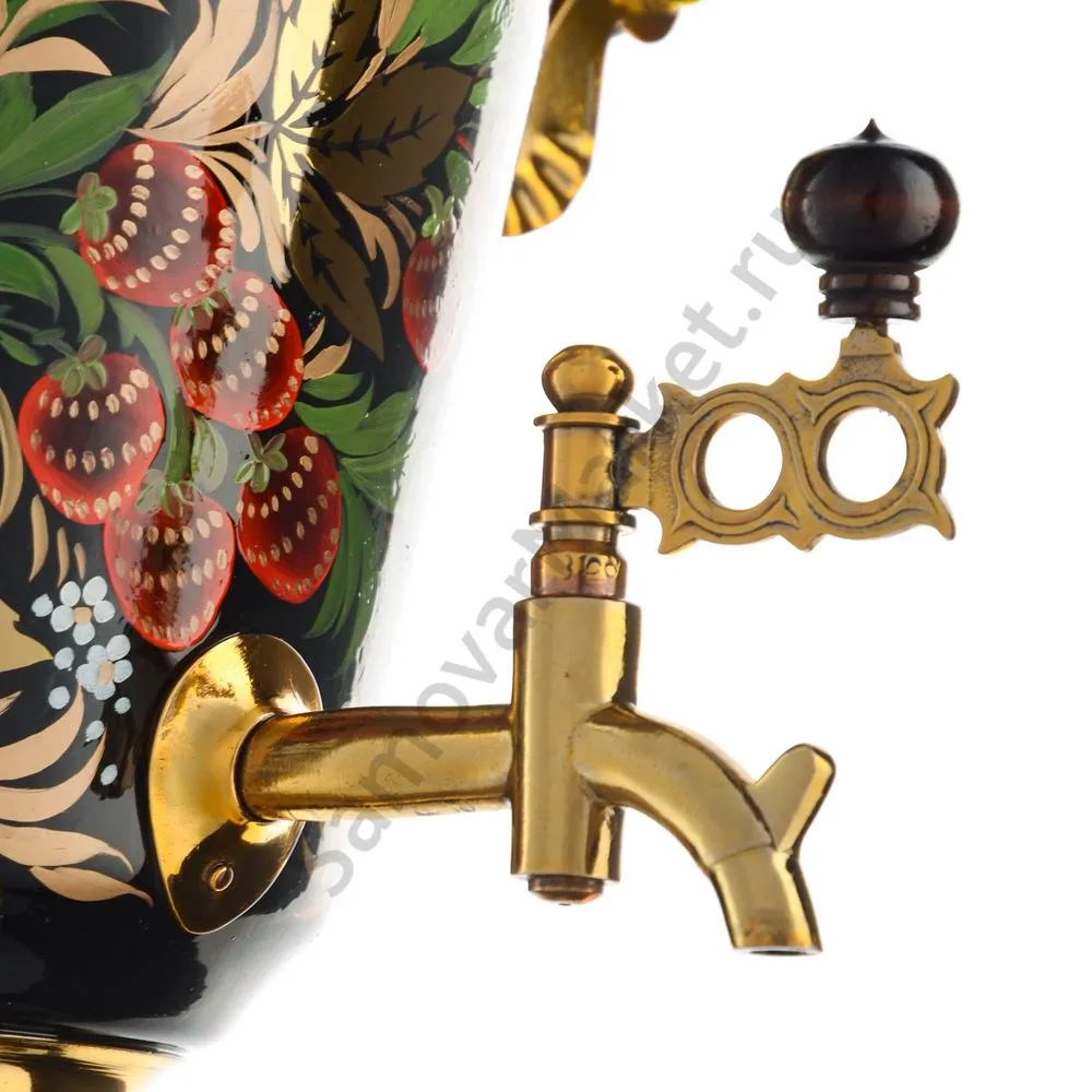 Ручки и хватки изготовлены из натурального дерева – берёзы, устойчивой к перепаду температур. Фурнитура роскошного глубокого каштанового цвета элитного красного дерева. Полностью готов к применению. Художественная роспись выполнена вручную специальными жаропрочными красками. Каждое изделие немного уникально и придает чаепитию особую красочность и даже праздничность. Сделано в Туле.