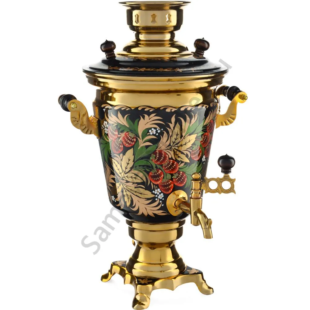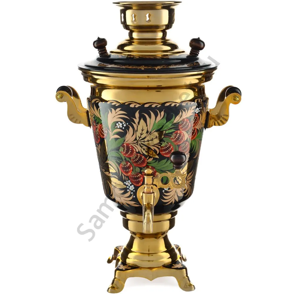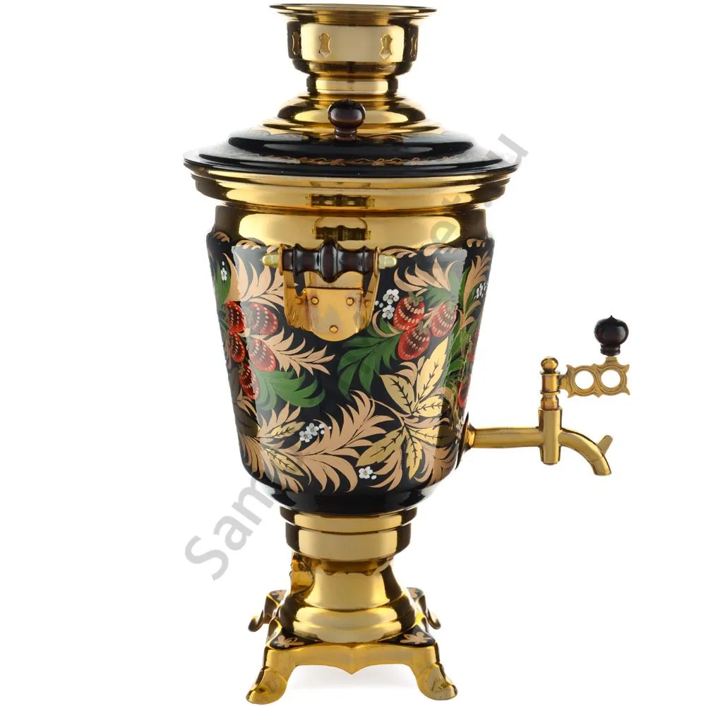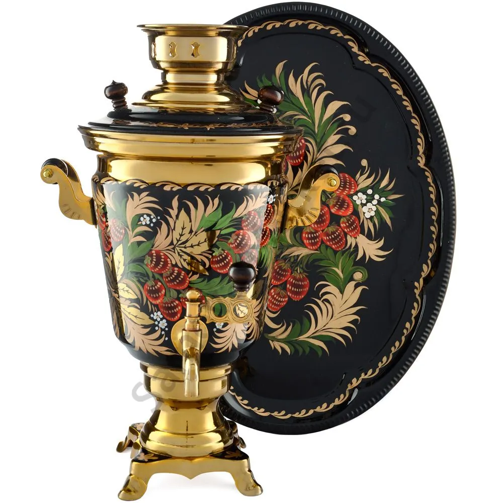 Ручки и хватки изготовлены из натурального дерева – берёзы, устойчивой к перепаду температур. Фурнитура роскошного глубокого каштанового цвета элитного красного дерева. Полностью готов к применению. Художественная роспись выполнена вручную специальными жаропрочными красками. Каждое изделие немного уникально и придает чаепитию особую красочность и даже праздничность. Сделано в Туле.