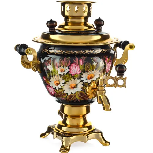 Ручки и хватки изготовлены из натурального дерева – берёзы, устойчивой к перепаду температур. Фурнитура роскошного глубокого каштанового цвета элитного красного дерева. Полностью готов к применению. Художественная роспись выполнена вручную специальными жаропрочными красками. Каждое изделие немного уникально и придает чаепитию особую красочность и даже праздничность. Сделано в Туле.