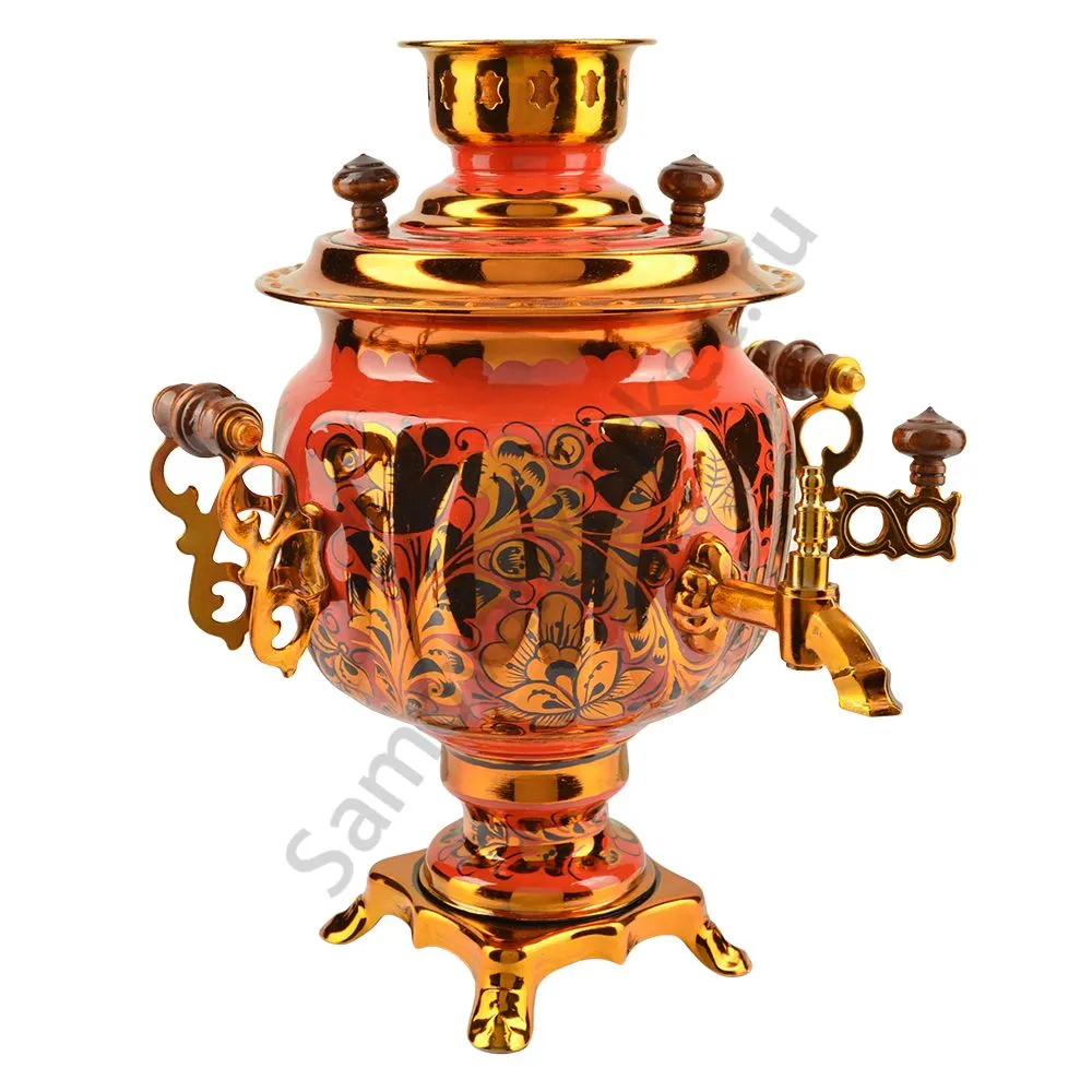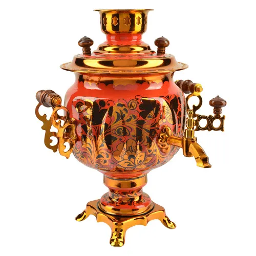 Ручки и хватки изготовлены из натурального дерева – берёзы, устойчивой к перепаду температур. Фурнитура роскошного глубокого каштанового цвета элитного красного дерева. Полностью готов к применению. Художественная роспись выполнена вручную специальными жаропрочными красками. Каждое изделие немного уникально и придает чаепитию особую красочность и даже праздничность. Сделано в Туле.