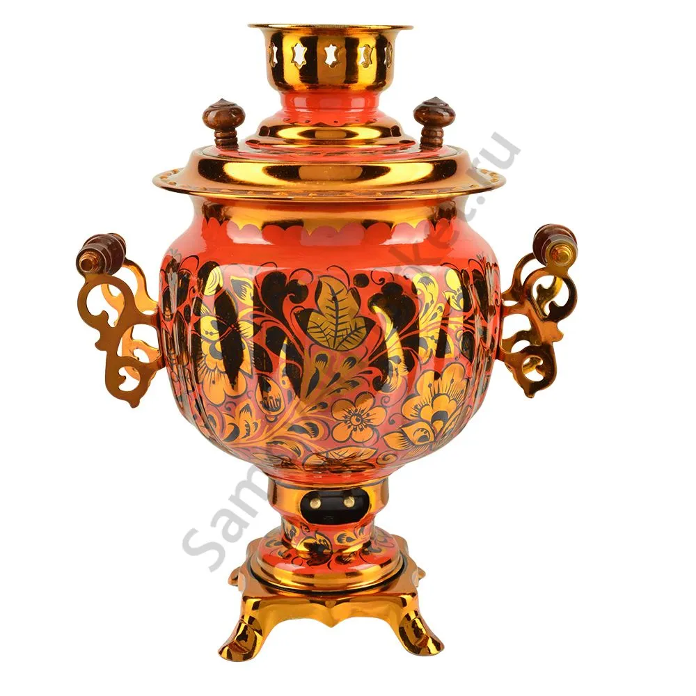 Работает от сети 220 V. К самовару прилагается шнур, красочная упаковка и инструкция по эксплуатации.