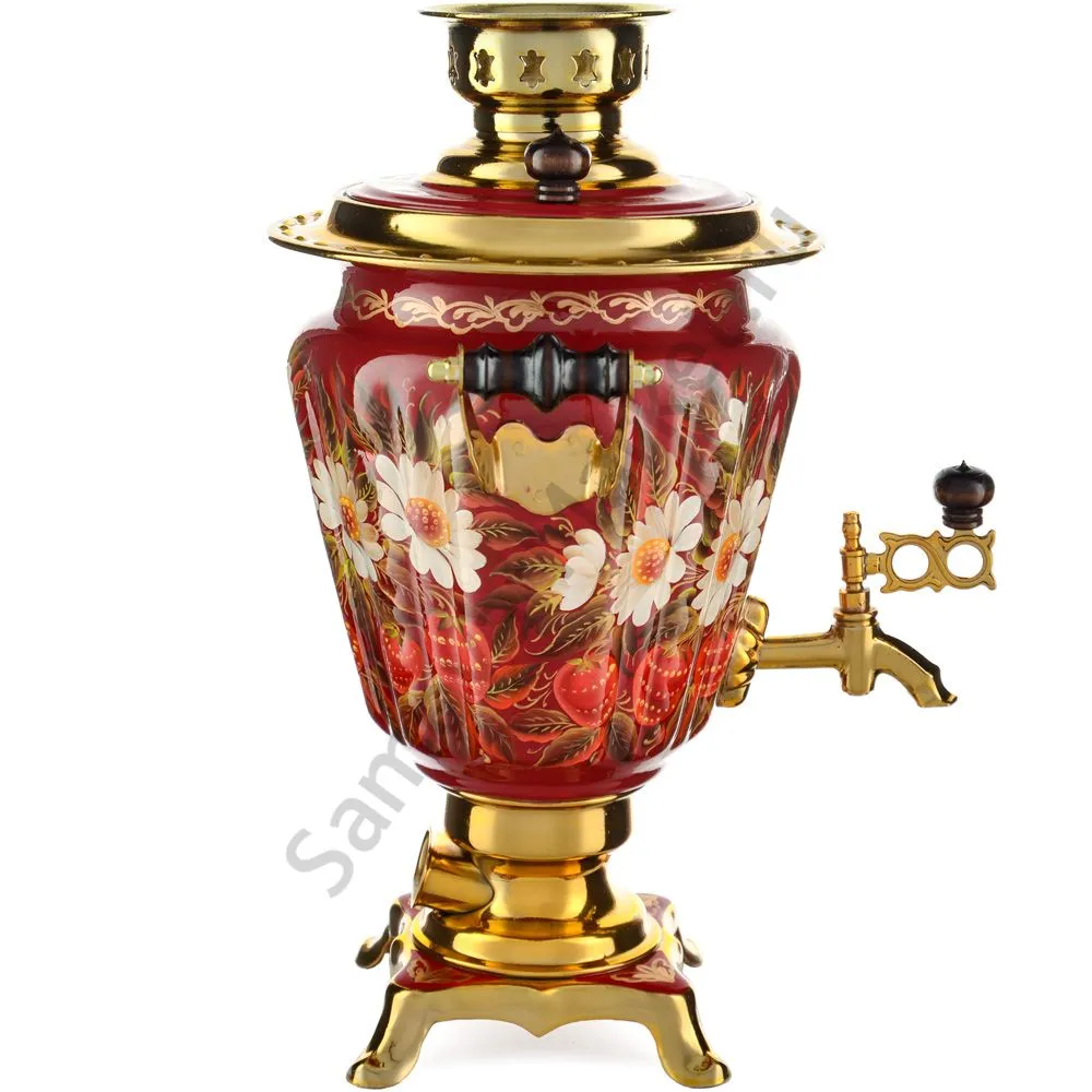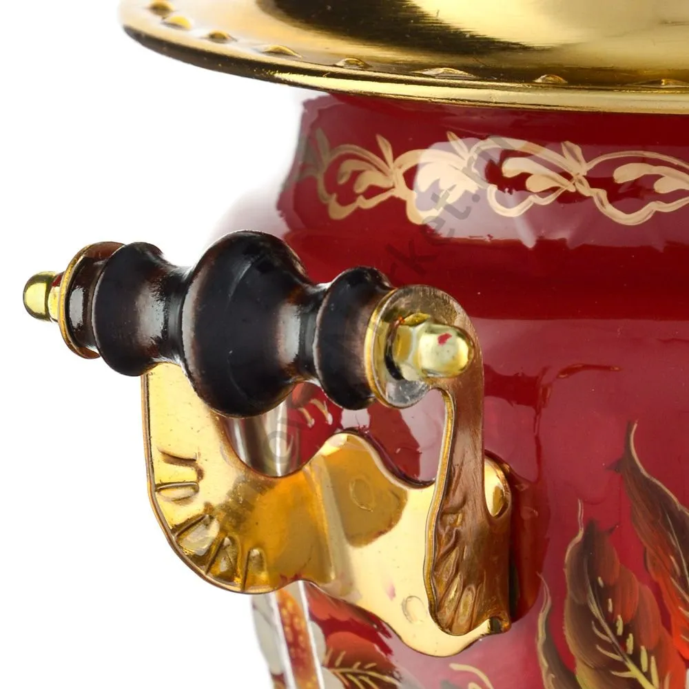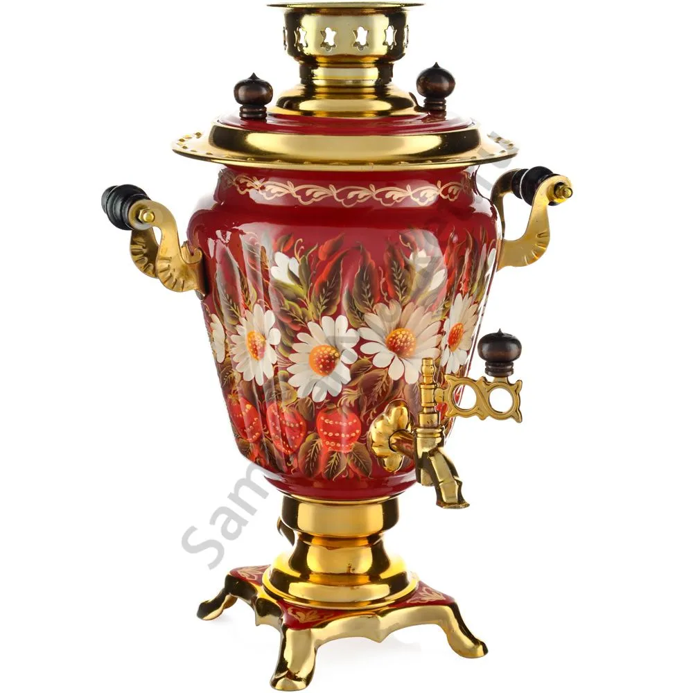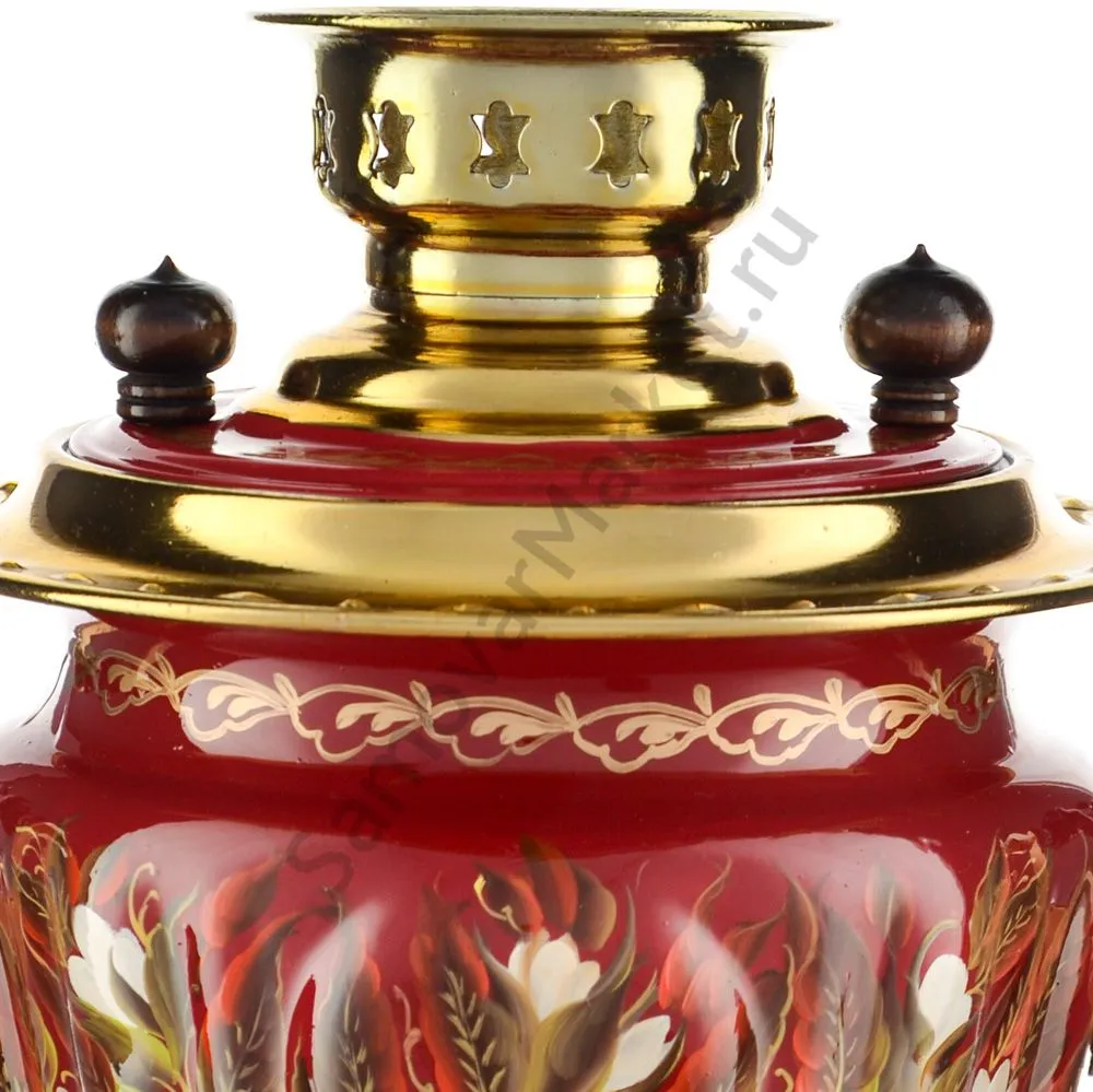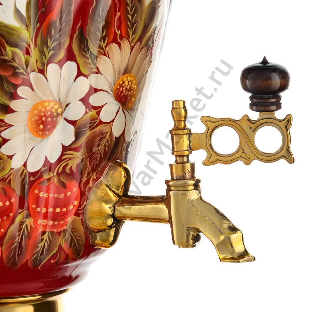 Ручки и хватки изготовлены из натурального дерева – берёзы, устойчивой к перепаду температур. Фурнитура роскошного глубокого каштанового цвета элитного красного дерева. Полностью готов к применению. Художественная роспись выполнена вручную специальными жаропрочными красками. Каждое изделие немного уникально и придает чаепитию особую красочность и даже праздничность. Сделано в Туле.