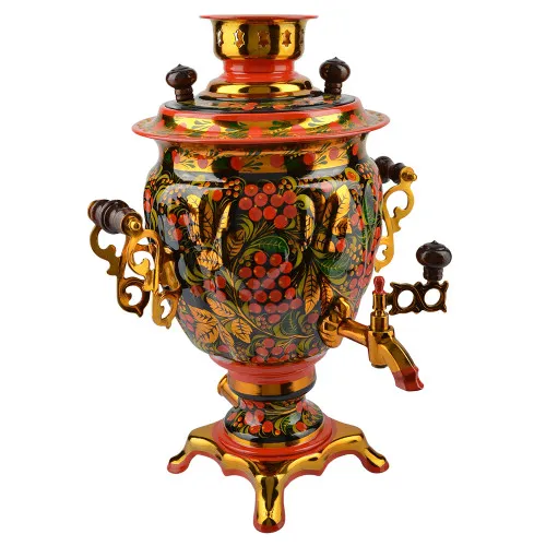 Ручки и хватки изготовлены из натурального дерева – берёзы, устойчивой к перепаду температур. Фурнитура роскошного глубокого каштанового цвета элитного красного дерева. Полностью готов к применению. Художественная роспись выполнена вручную специальными жаропрочными красками. Каждое изделие немного уникально и придает чаепитию особую красочность и даже праздничность. Сделано в Туле.