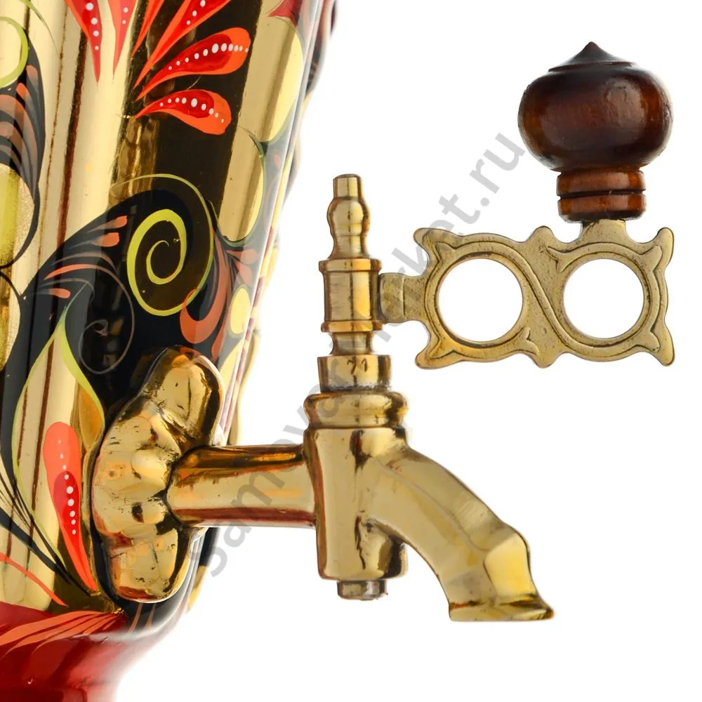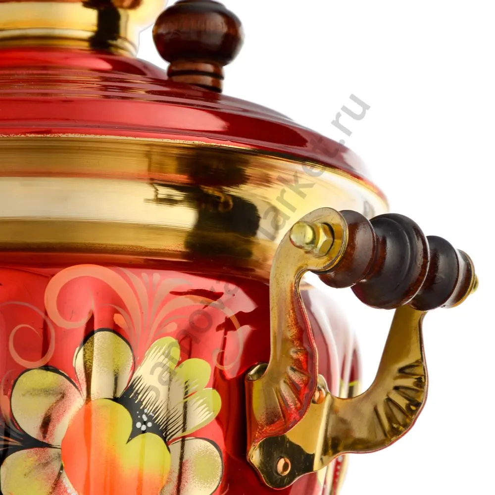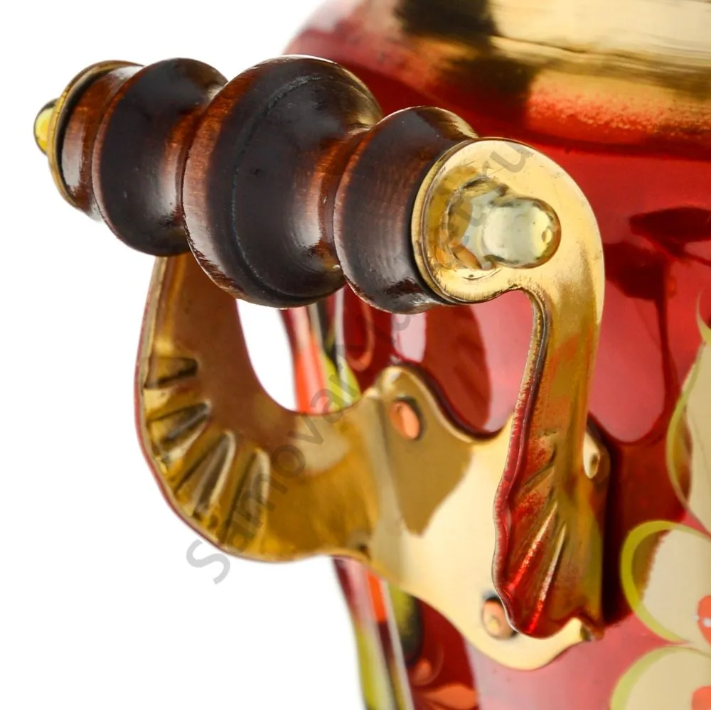 Ручки и хватки изготовлены из натурального дерева – берёзы, устойчивой к перепаду температур. Фурнитура роскошного глубокого каштанового цвета элитного красного дерева. Полностью готов к применению. Художественная роспись выполнена вручную специальными жаропрочными красками. Каждое изделие немного уникально и придает чаепитию особую красочность и даже праздничность. Сделано в Туле.