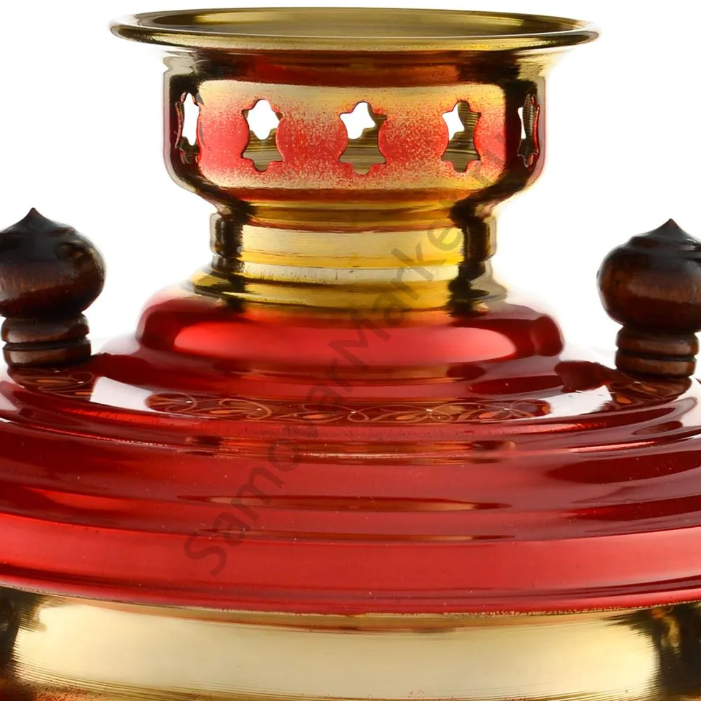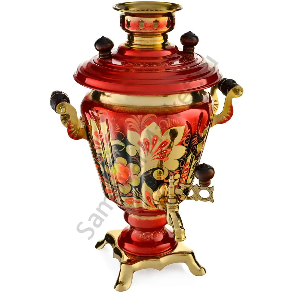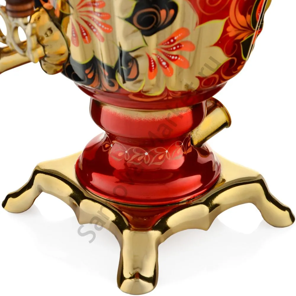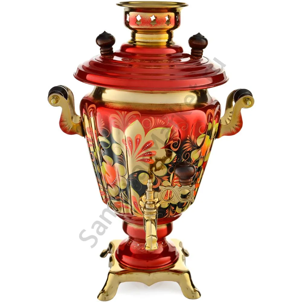 Ручки и хватки изготовлены из натурального дерева – берёзы, устойчивой к перепаду температур. Фурнитура роскошного глубокого каштанового цвета элитного красного дерева. Полностью готов к применению. Художественная роспись выполнена вручную специальными жаропрочными красками. Каждое изделие немного уникально и придает чаепитию особую красочность и даже праздничность. Сделано в Туле.