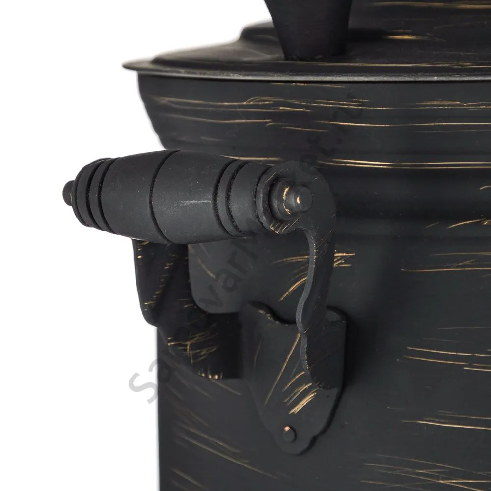 Этот самовар работает как на дровах, так и от электричества. Проверенная годами конструкция отличается практичностью и универсальностью. Воду, приготовленную на дровах, всегда можно подогреть при помощи электричества, т.к. греть повторно дровами неполный самовар категорически запрещается. Также такие самовары используют и просто как электрические или просто как дровяные в зависимости от обстоятельств.