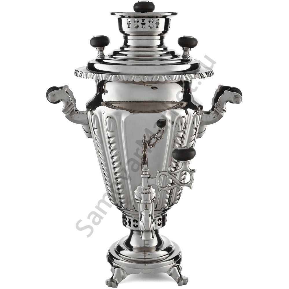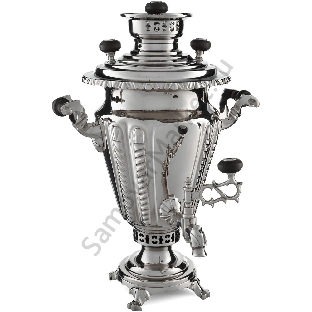 Самовар антикварный на дровах 3,3 литра формы «Рюмка с колоннами» Тул.Патрон.Завод, серебристый