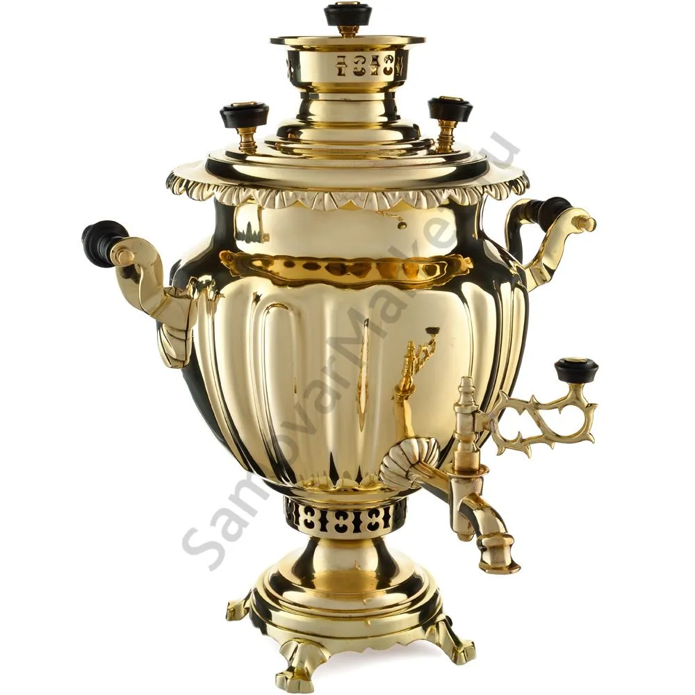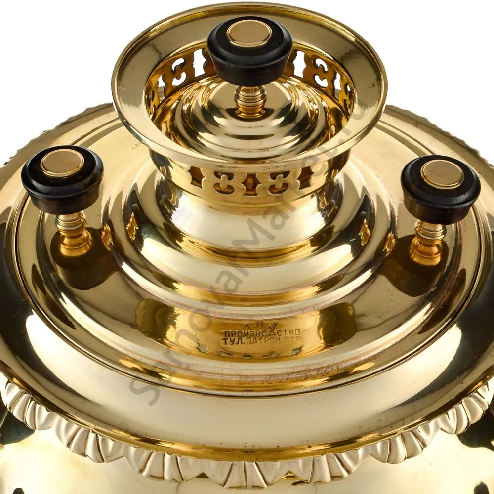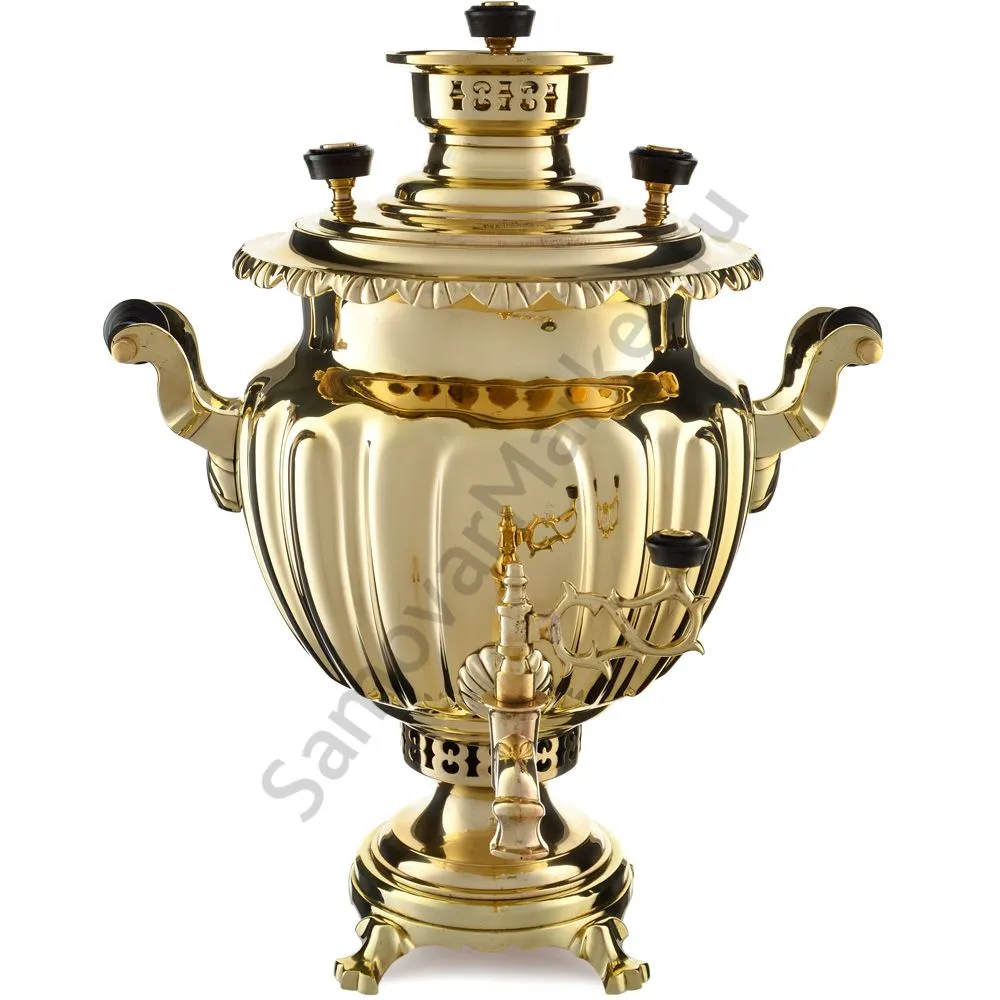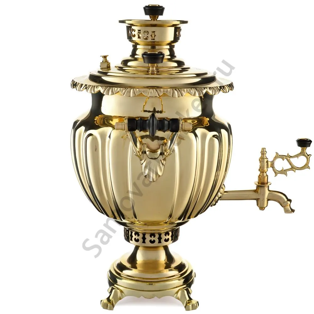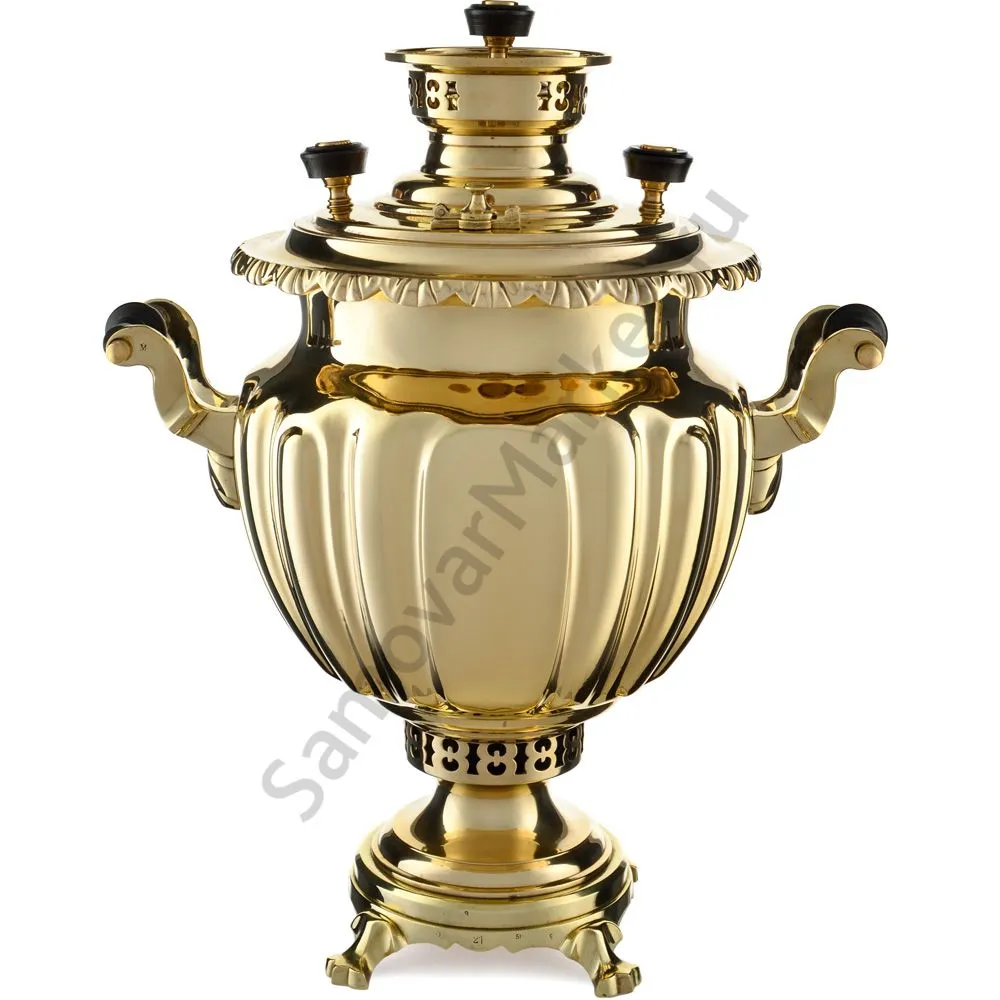Самовар антикварный на дровах 6,5 литров формы «Ваза дольная», ТПЗ, золотистый