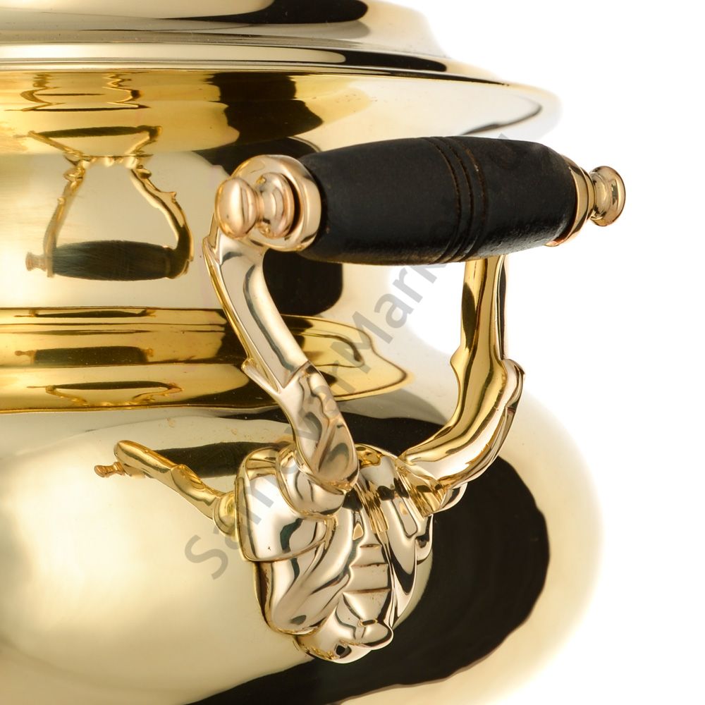 Ручки и хватки изготовлены из натурального дерева – берёзы, устойчивой к перепаду температур. Дерево окрашено специльными красками с эффектом благородной старины. Полностью готов к применению.Эта модель изготовлена из латуни. Рекомендуется полировка специальными средствами для поддержания блеска. Сделано в Туле.
