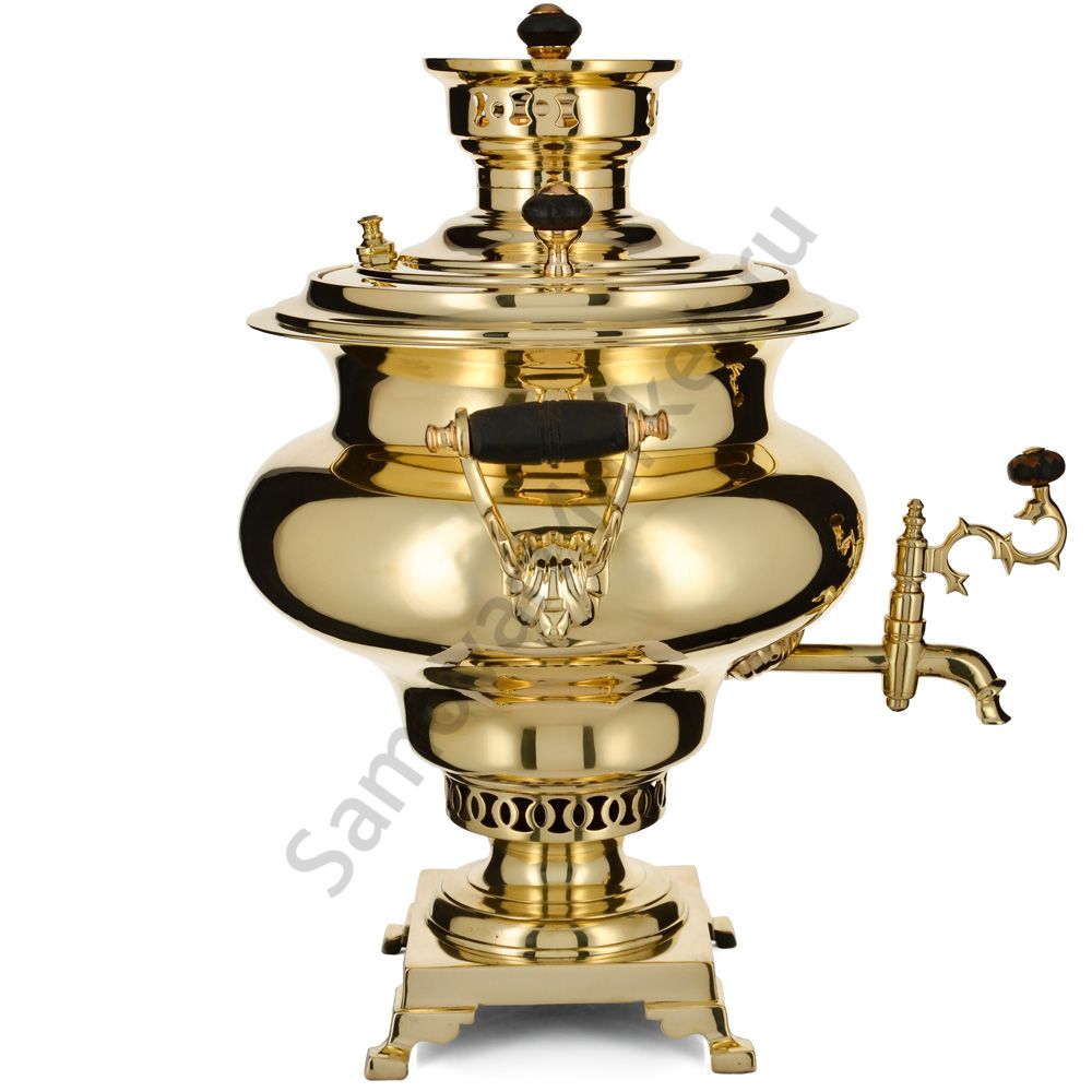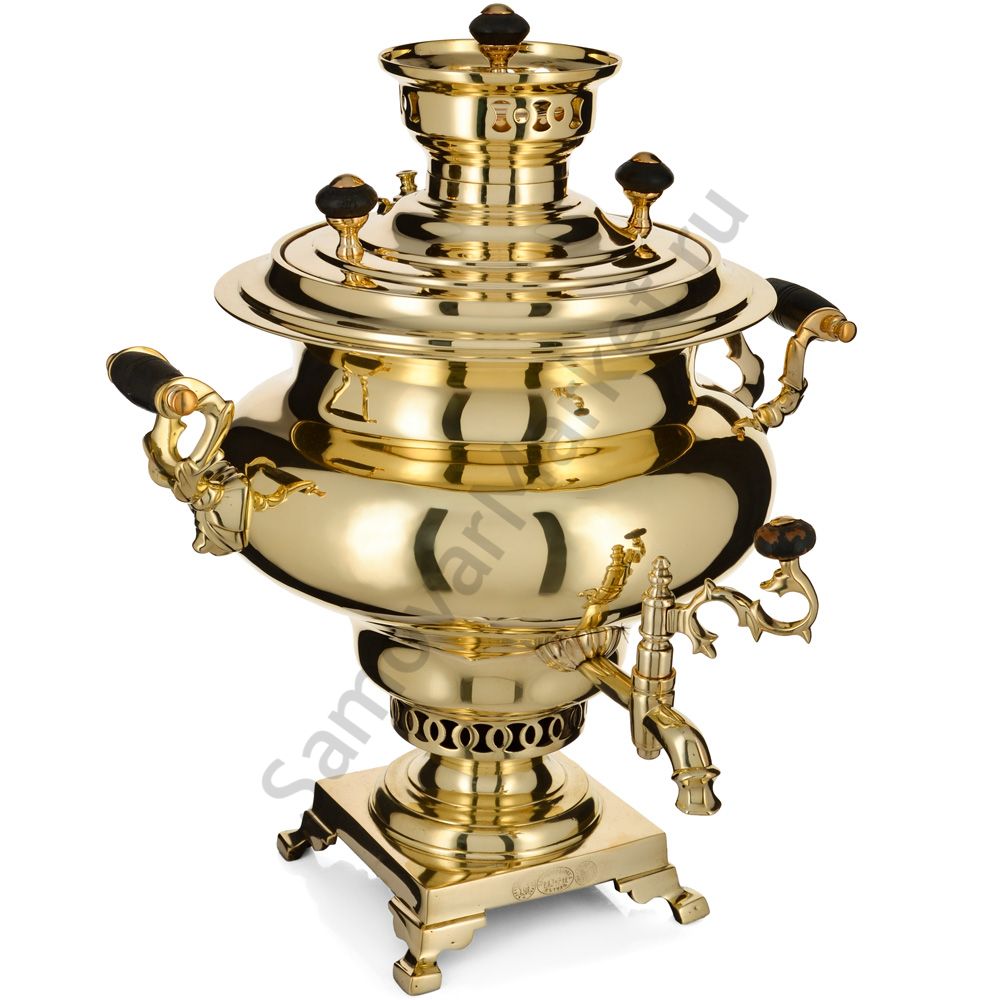 Этот самовар работает на дровах, углях, шишках, щепе. Топится он при помощи трубы, которая устанавливается сверху для образования тяги. Или при помощи сапога в качестве мехов. Внутренние стенки покрыты пищевым оловом методом гальваники.