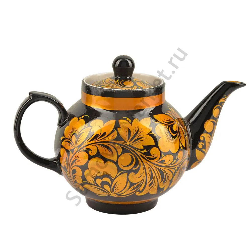 Чайник заварочный для самовара с художественной росписью «Кудрина золото на чёрном»