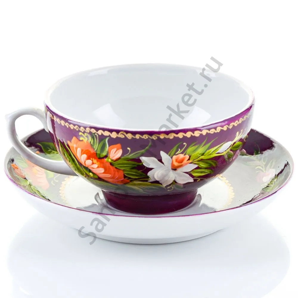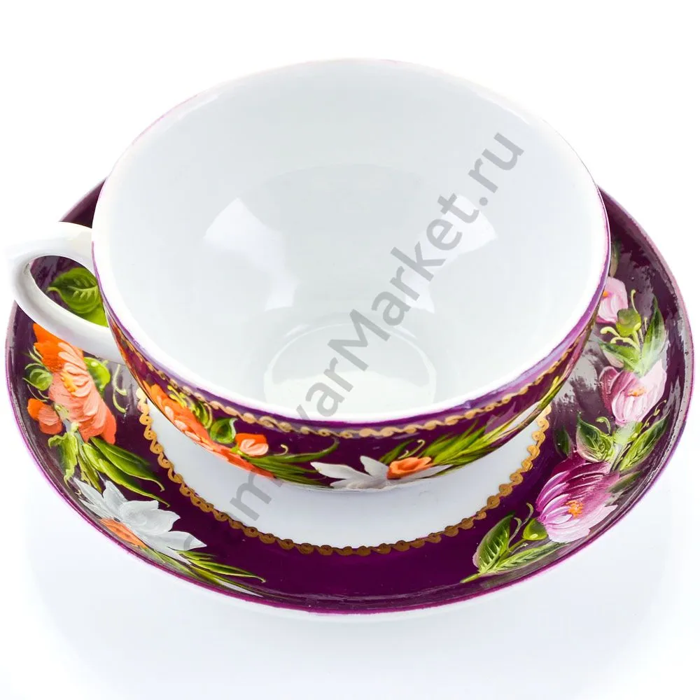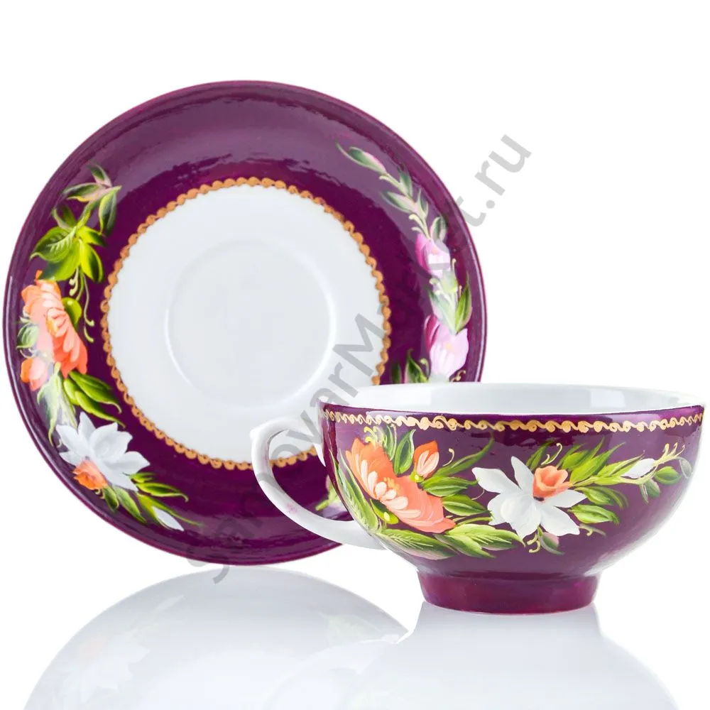 Чайная пара с художественной росписью «Букет на фиолетовом»