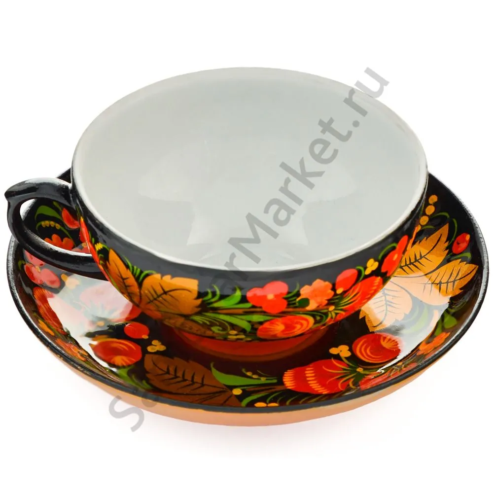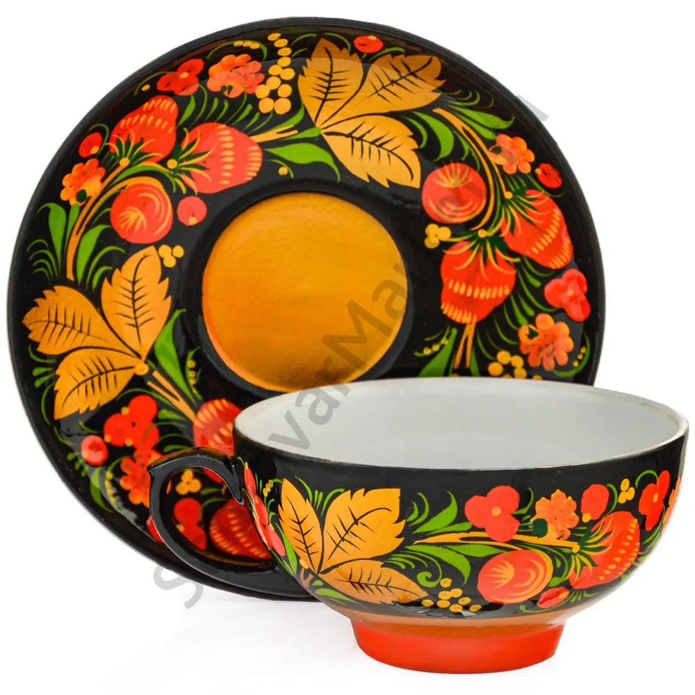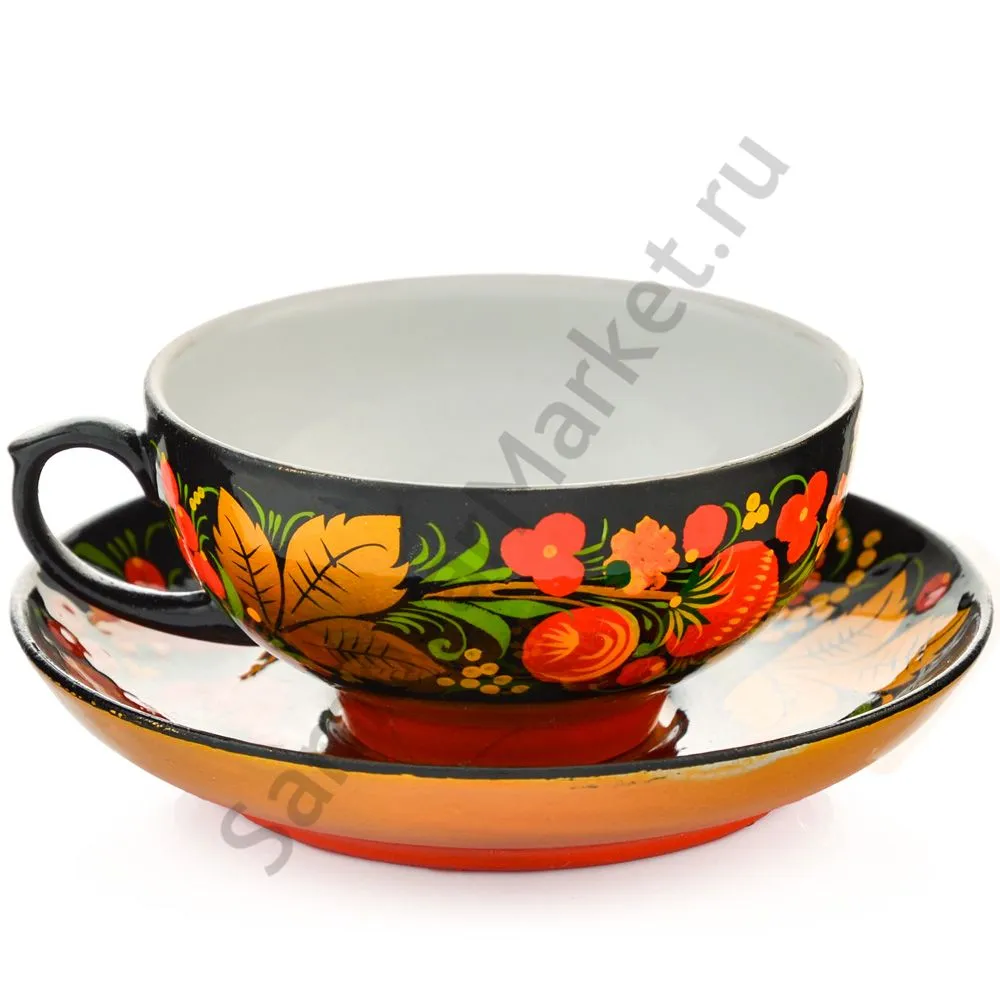 Чайная пара с художественной росписью «Хохлома с ягодами в зелени»