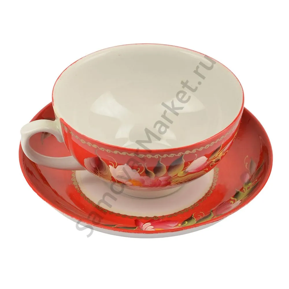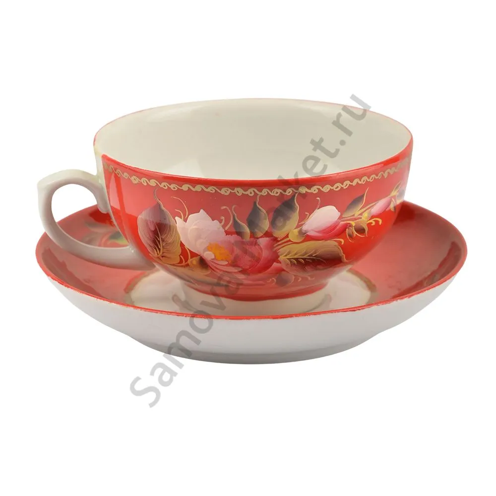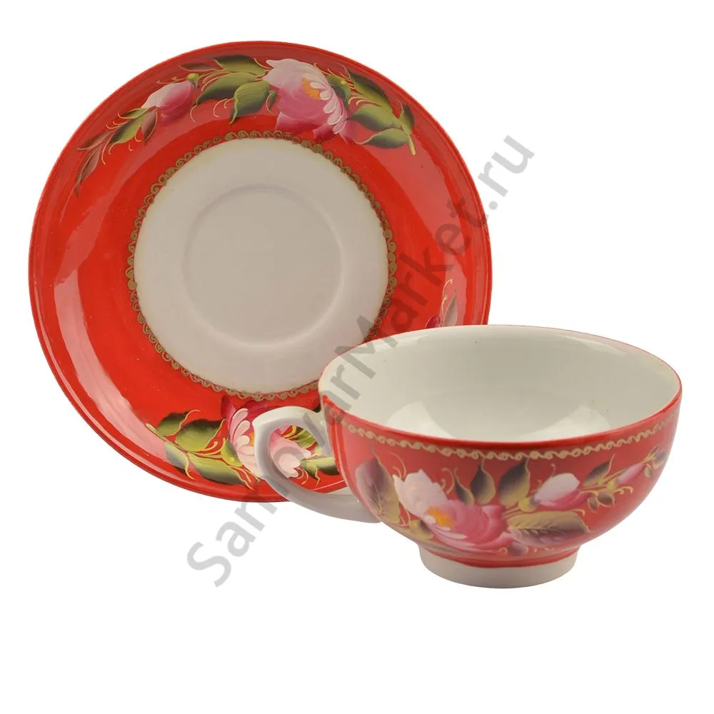 Изделие Дулевского фарфорового завода, завода, качество продукции которого проверено годами. Нами отбираются чайники, сахарницы, кружки и тарелки, которые наилучшим образом подходят по размеру и форме к самоварам. Далее они декорируются в цвет самоваров жаропрочными материалами.