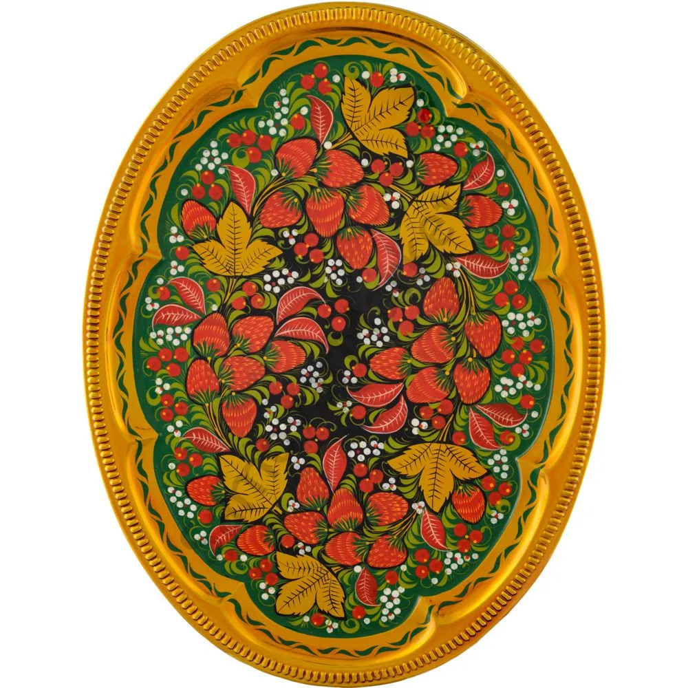Поднос для самовара овальный с художественной росписью «Клубника в зелени №2 на зелёном»