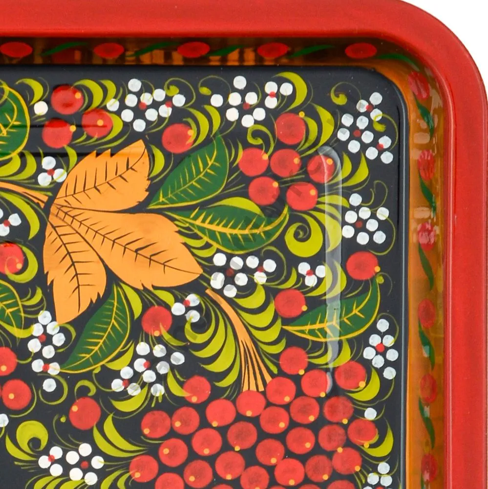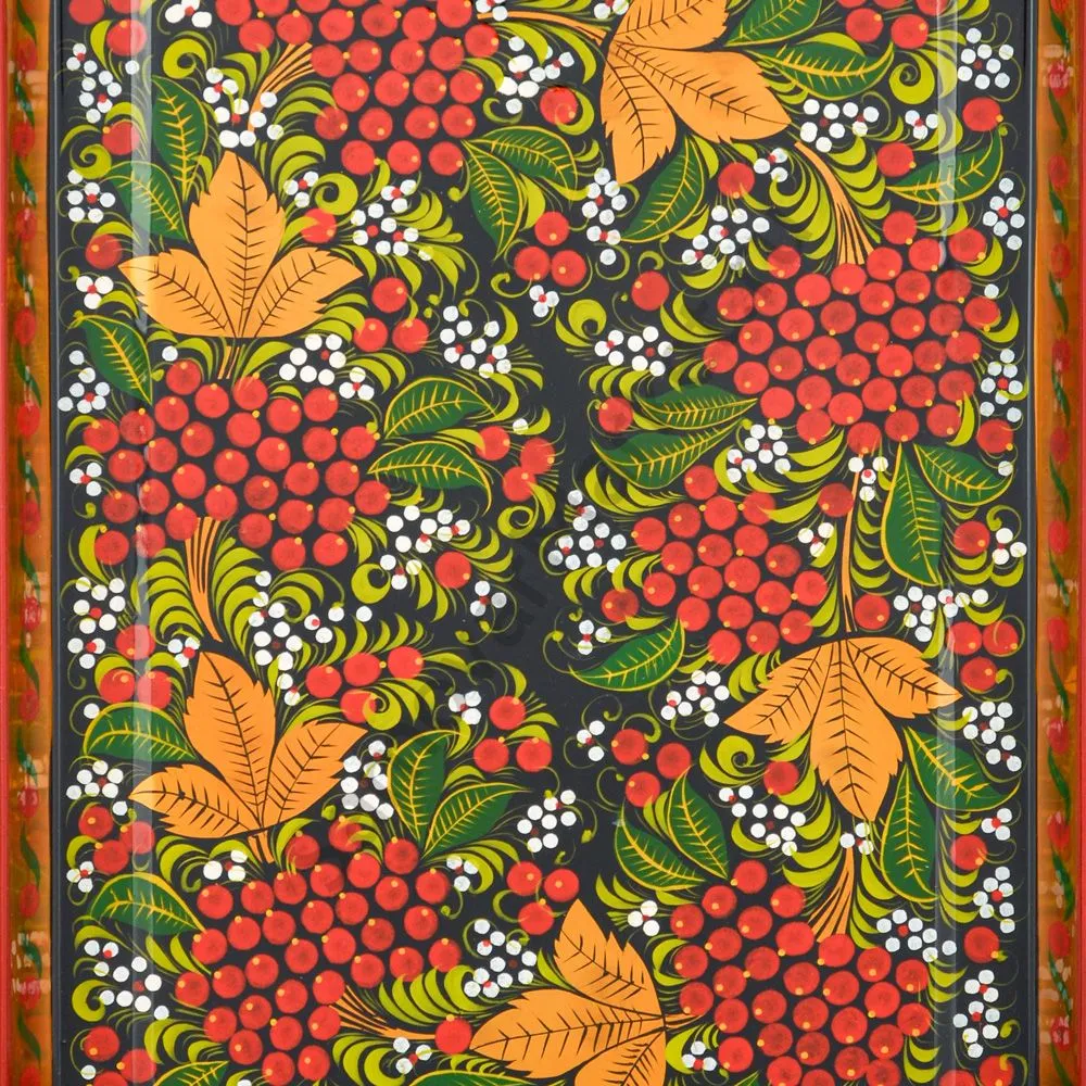 Поднос для самовара прямоугольный с художественной росписью «Рябина в зелени»