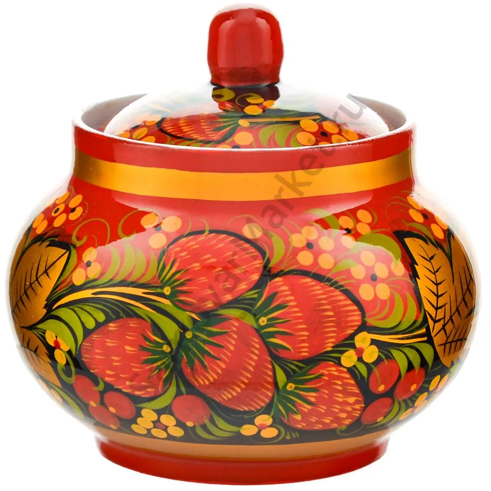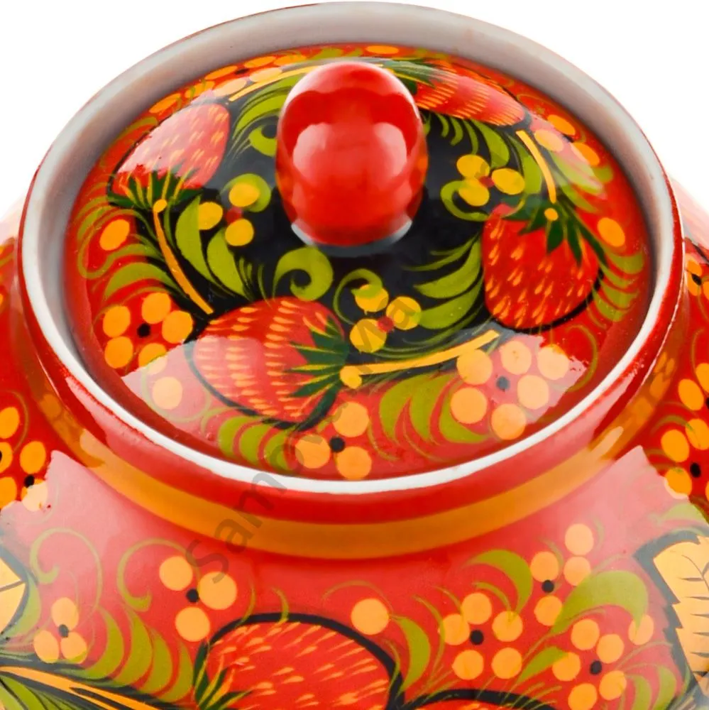 Роспись | Клубника в зелени №2 на красном |