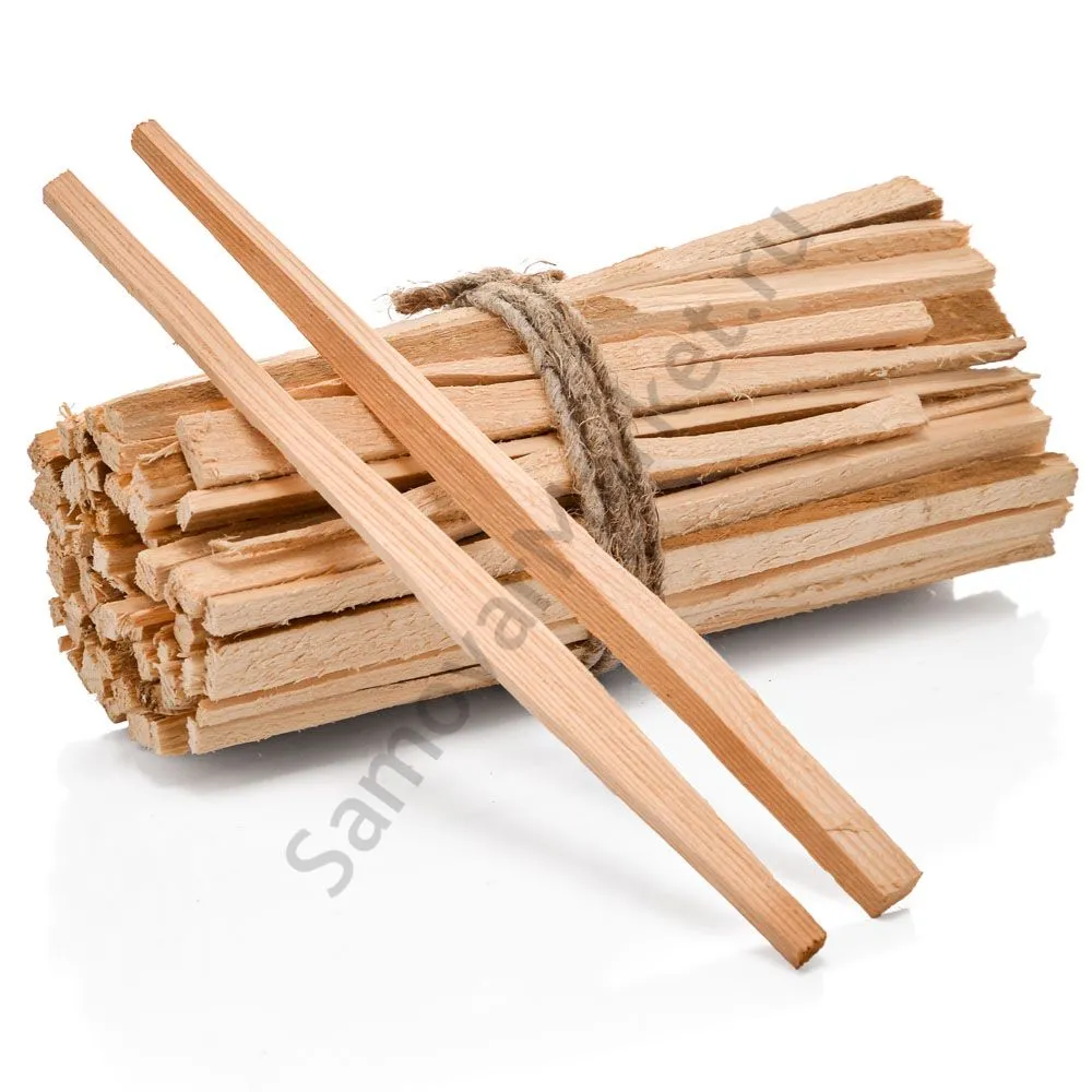 Идеальная форма — укороченные 20-сантиметровые лучины удобно закладывать в топку.
