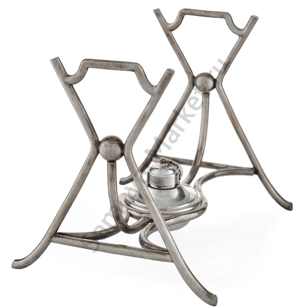 Спиртовка, которая устанавливается под бульоткой наполняется горючей жидкостью, такой как спирт, и поджигается. Такой небольшой очаг поддерживает температуру воды, глинтвейна, кофе и украшает стол и интерьер.