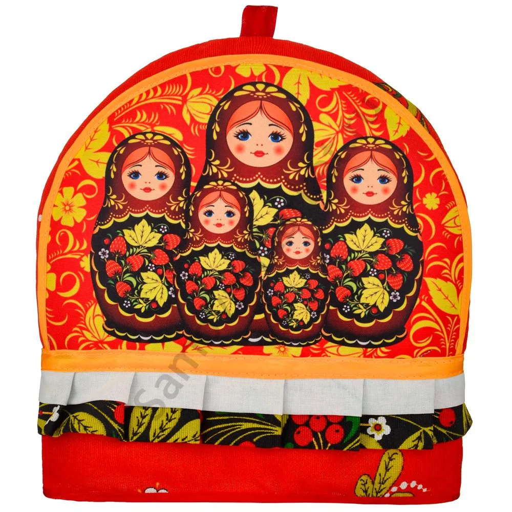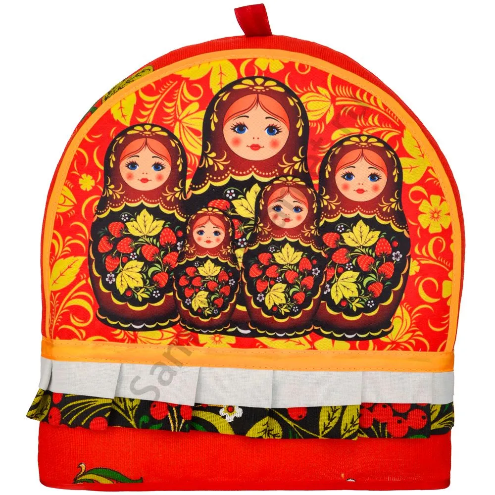 Грелка на заварочный чайник колпак «Матрёшки хохлома»