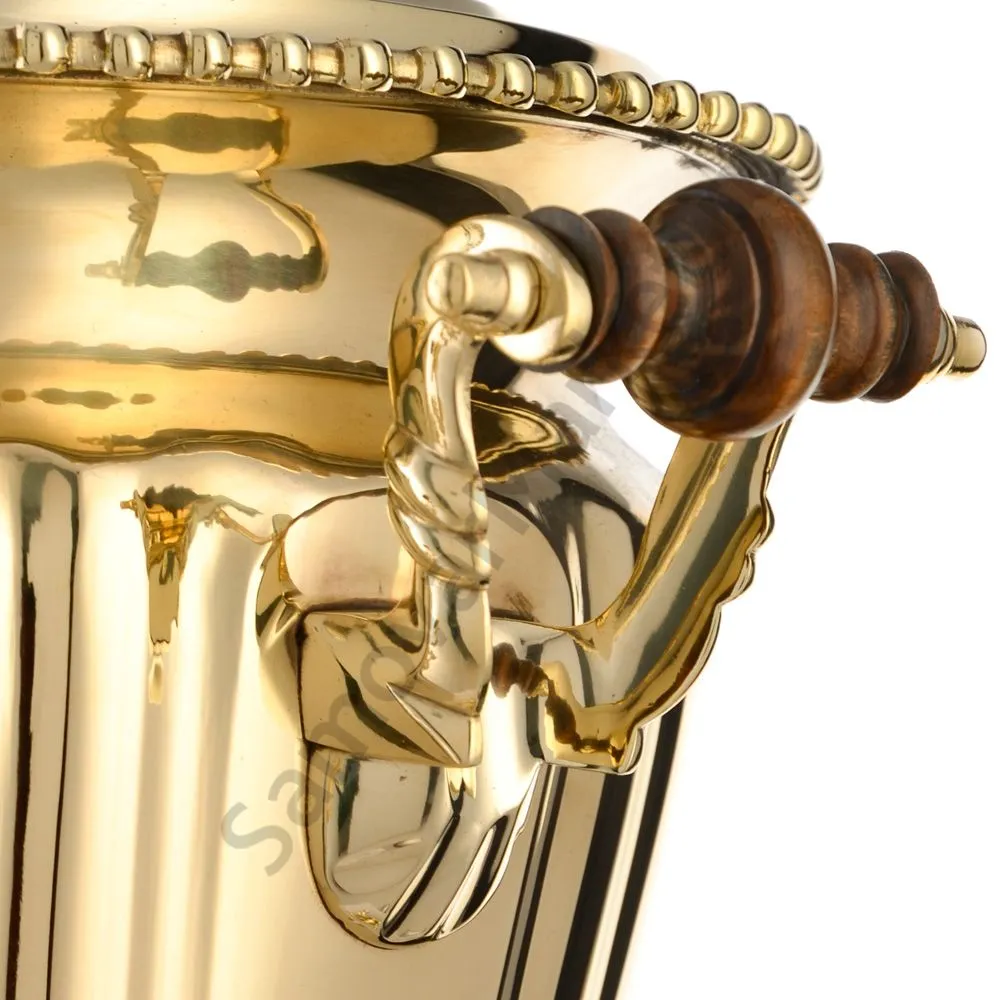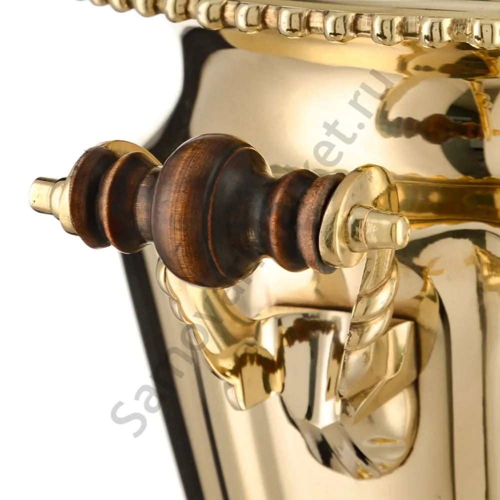 Ручки и хватки изготовлены из натурального дерева – берёзы, устойчивой к перепаду температур. Дерево окрашено специльными красками с эффектом благородной старины. Полностью готов к применению.Эта модель изготовлена из латуни. Рекомендуется полировка специальными средствами для поддержания блеска. Сделано в Туле.