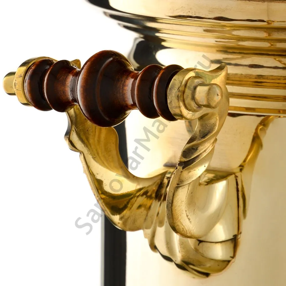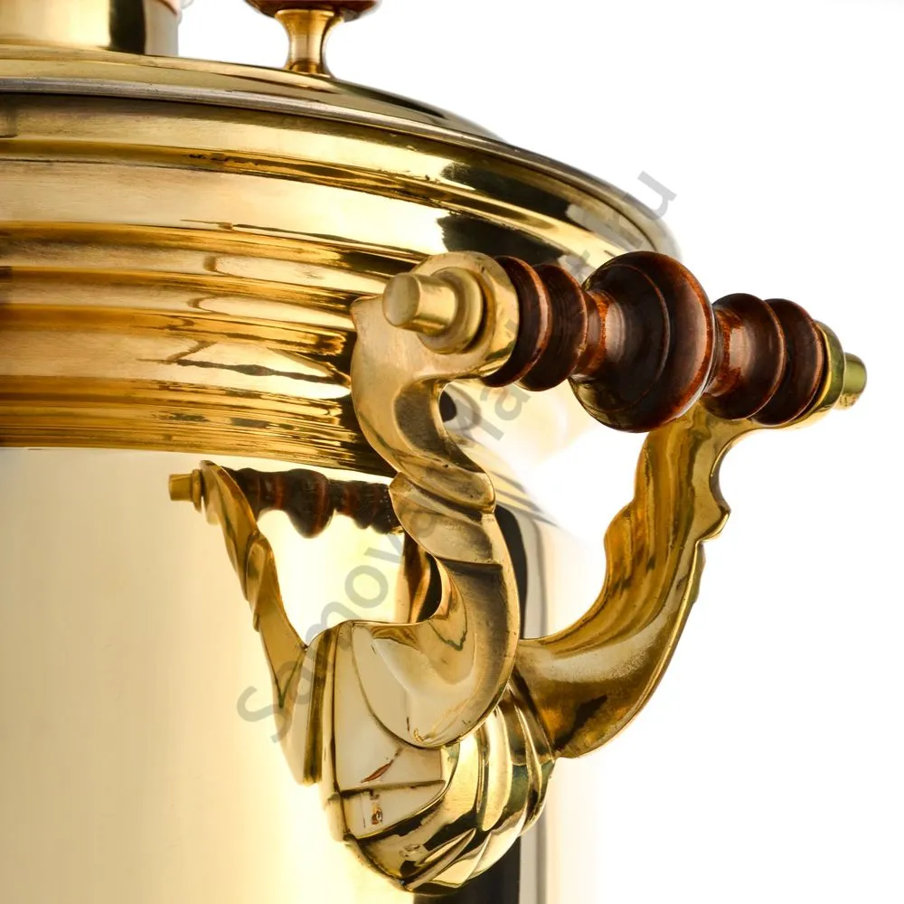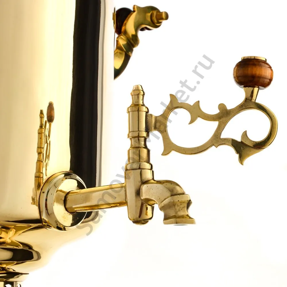 Ручки и хватки изготовлены из натурального дерева – берёзы, устойчивой к перепаду температур. Дерево окрашено специльными красками с эффектом благородной старины. Полностью готов к применению.Эта модель изготовлена из латуни. Рекомендуется полировка специальными средствами для поддержания блеска. Сделано в Туле.
