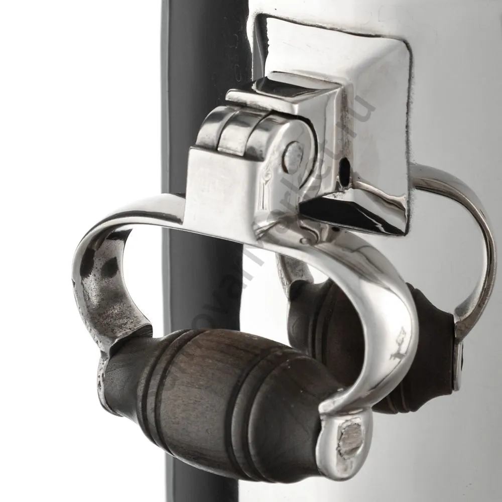 Ручки и хватки изготовлены из натурального дерева – берёзы, устойчивой к перепаду температур. Дерево окрашено специальными красками с эффектом благородной старины. Полностью готов к применению.Никелированные изделия из латуни – это красиво и практично. Единственный недостаток никелировки – они стоят немного дороже просто латунных. Но поверьте, сделав однажды выбор в пользу никелированного, Вы никогда об этом не пожалеете! Сделано в Туле.