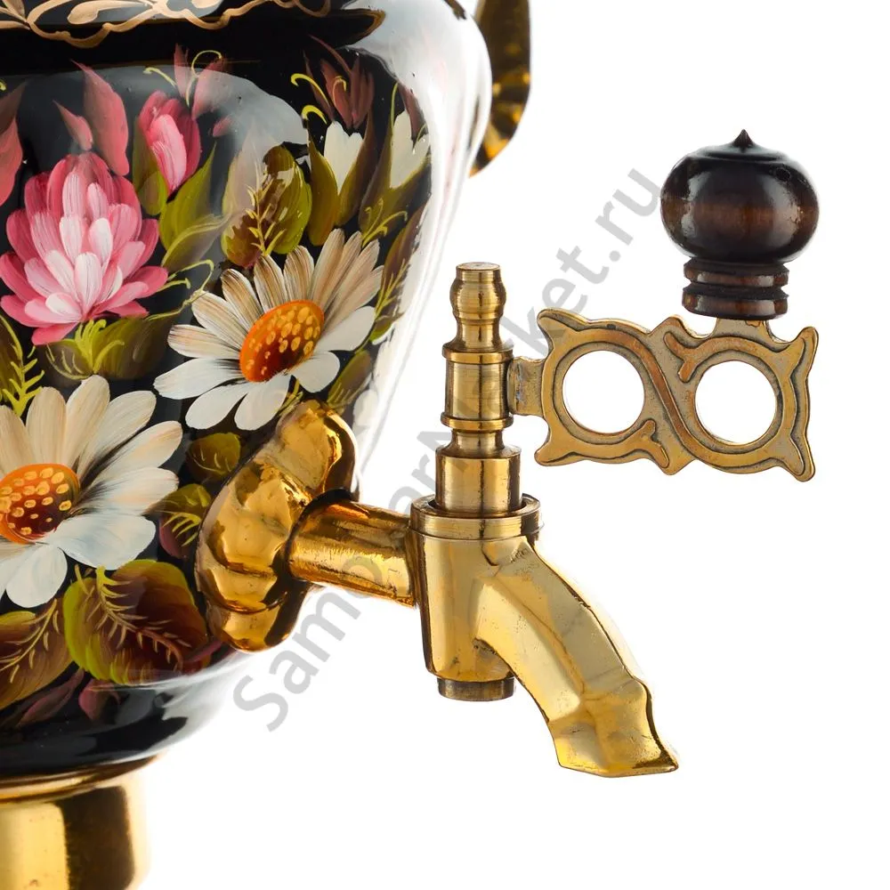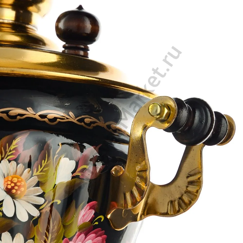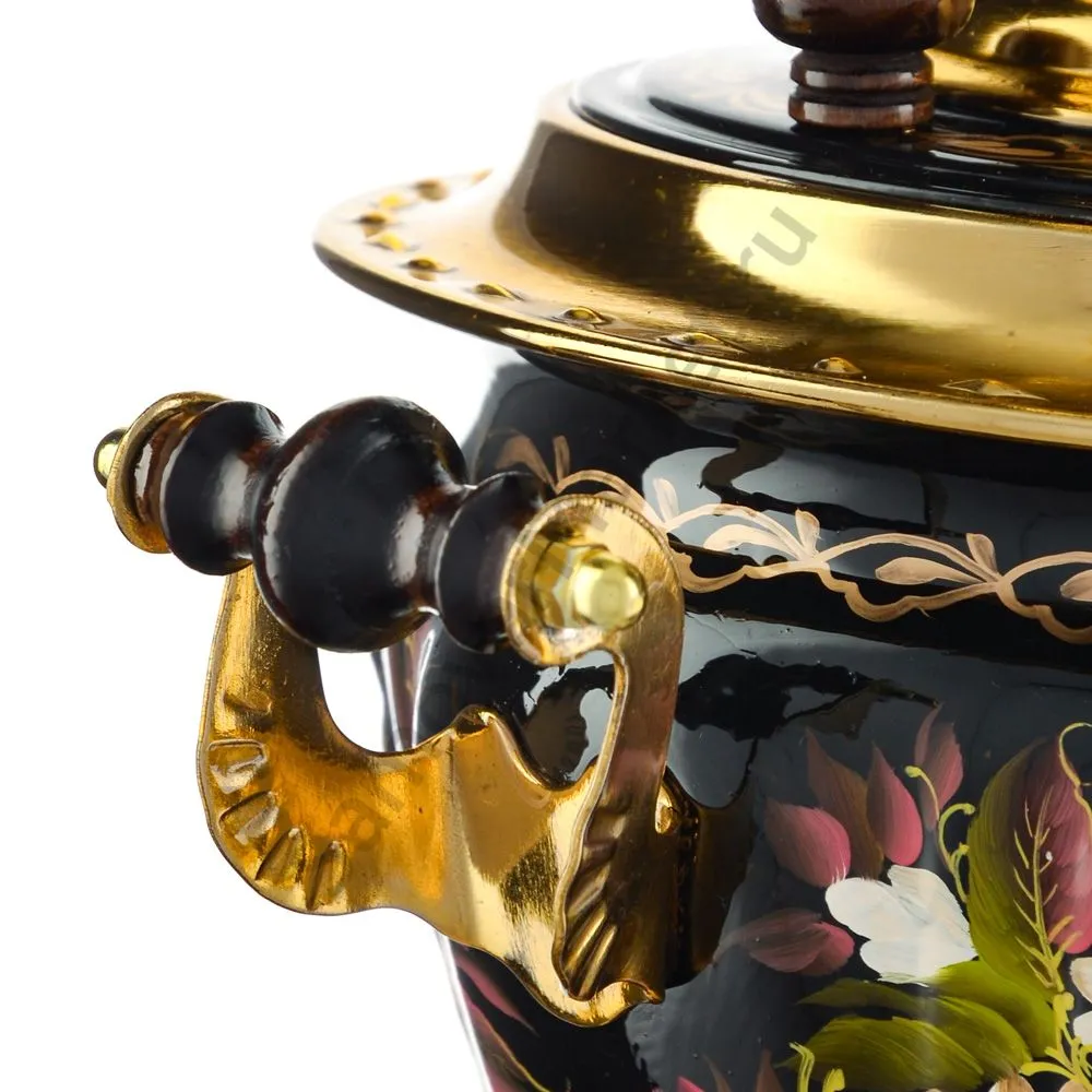 Ручки и хватки изготовлены из натурального дерева – берёзы, устойчивой к перепаду температур. Фурнитура роскошного глубокого каштанового цвета элитного красного дерева. Полностью готов к применению. Художественная роспись выполнена вручную специальными жаропрочными красками. Каждое изделие немного уникально и придает чаепитию особую красочность и даже праздничность. Сделано в Туле.