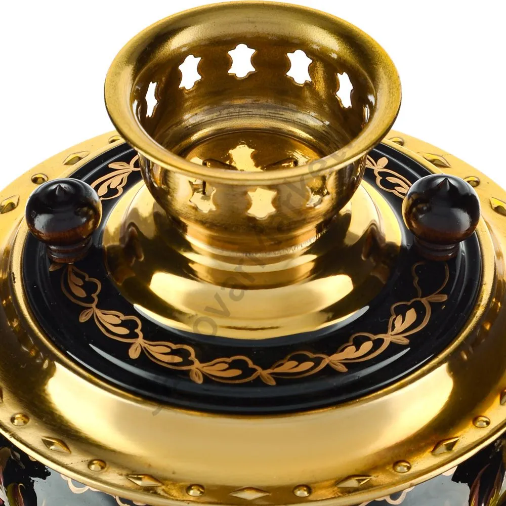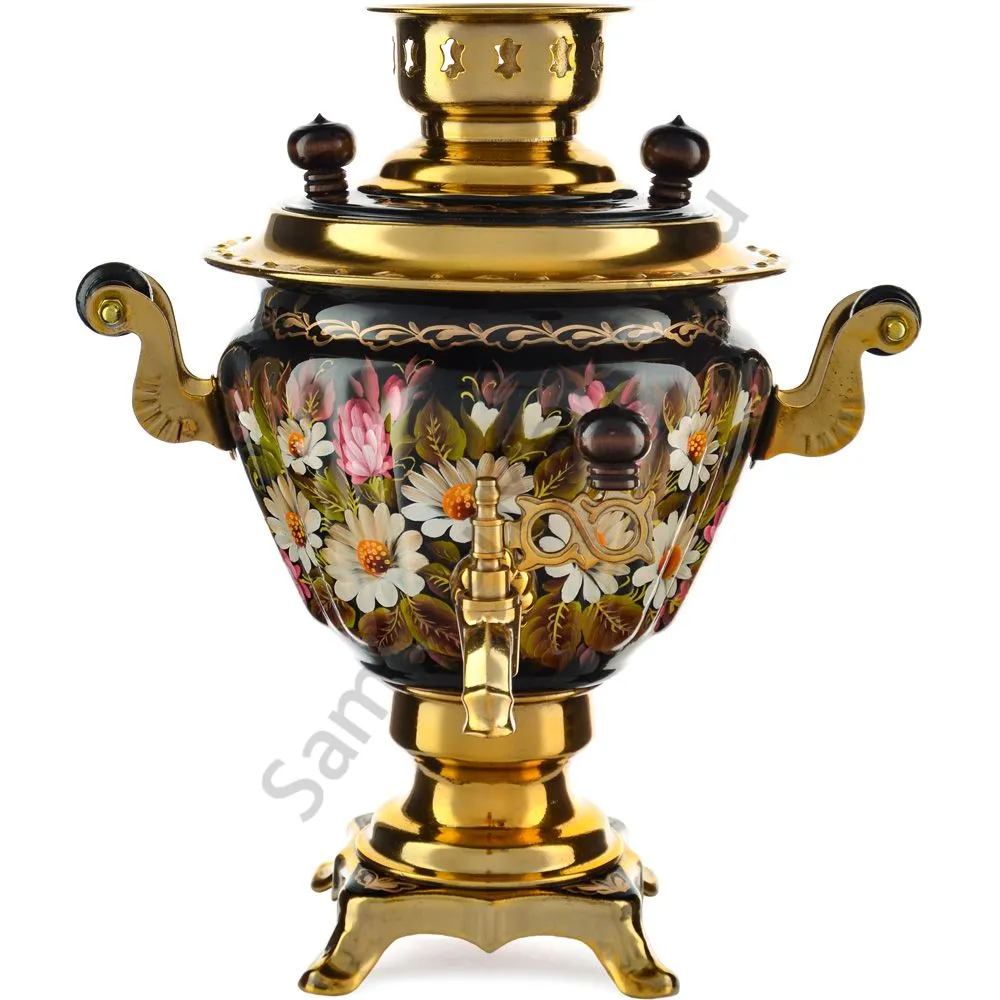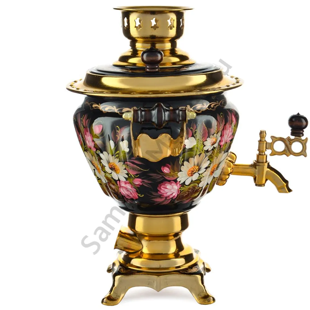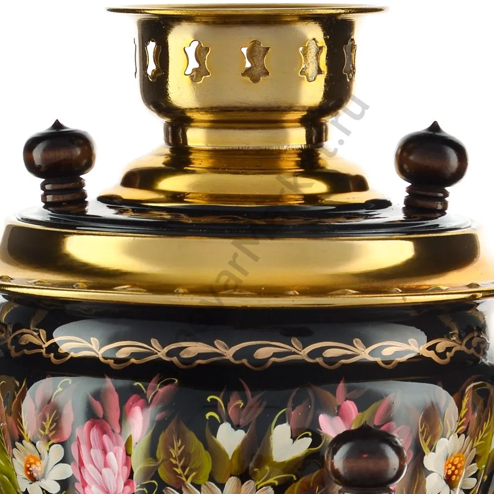 Ручки и хватки изготовлены из натурального дерева – берёзы, устойчивой к перепаду температур. Фурнитура роскошного глубокого каштанового цвета элитного красного дерева. Полностью готов к применению. Художественная роспись выполнена вручную специальными жаропрочными красками. Каждое изделие немного уникально и придает чаепитию особую красочность и даже праздничность. Сделано в Туле.