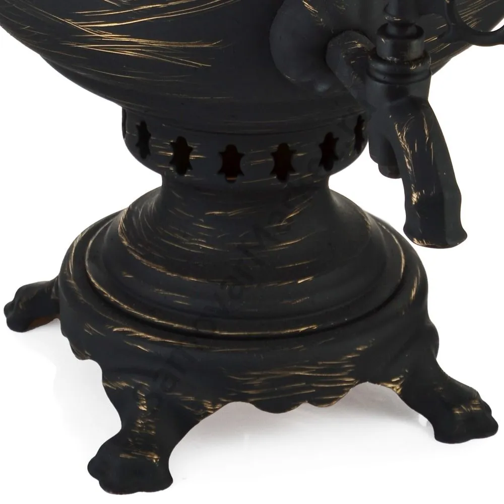 Этот самовар работает как на дровах, так и от электричества. Проверенная годами конструкция отличается практичностью и универсальностью. Воду, приготовленную на дровах, всегда можно подогреть при помощи электричества, т.к. греть повторно дровами неполный самовар категорически запрещается. Также такие самовары используют и просто как электрические или просто как дровяные в зависимости от обстоятельств.