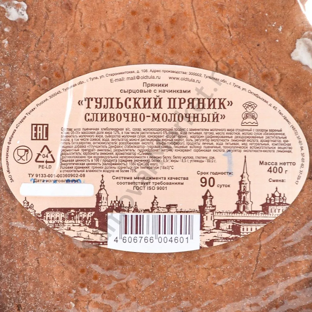 • Начинка: Варёная сгущёнка — густая, кремовая, с насыщенным вкусом карамелизированного молока. Именно она дарит прянику богатый сливочный вкус и нежный молочный аромат.