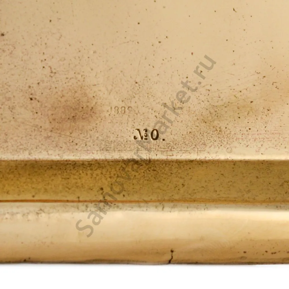 Поднос для самовара антикварный, дореволюционный формы «Замочная скважина», Кольчугино, золотой