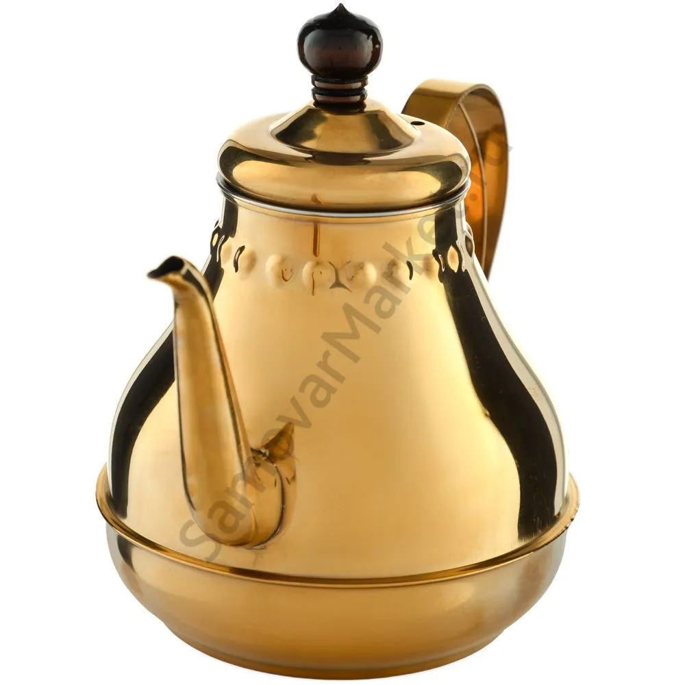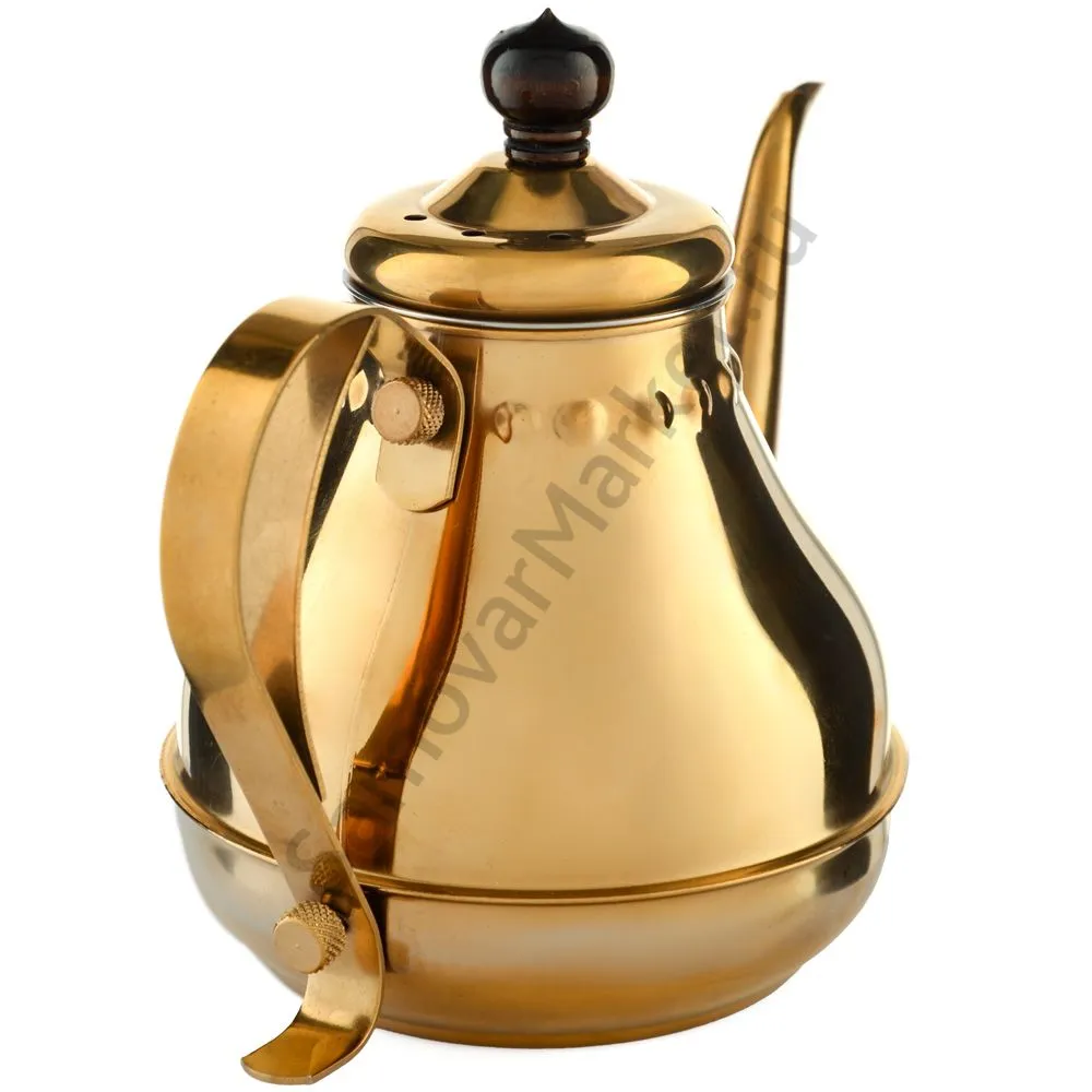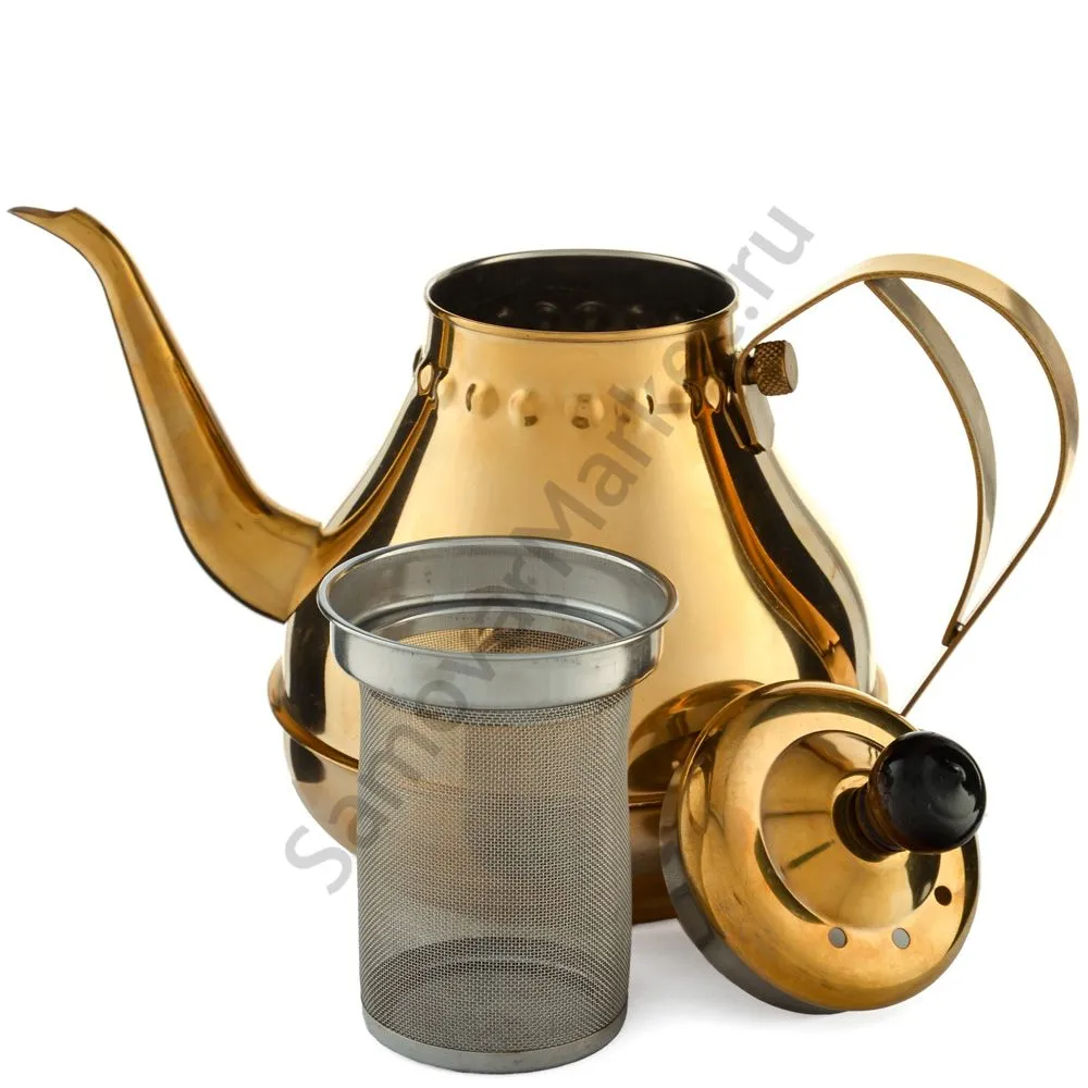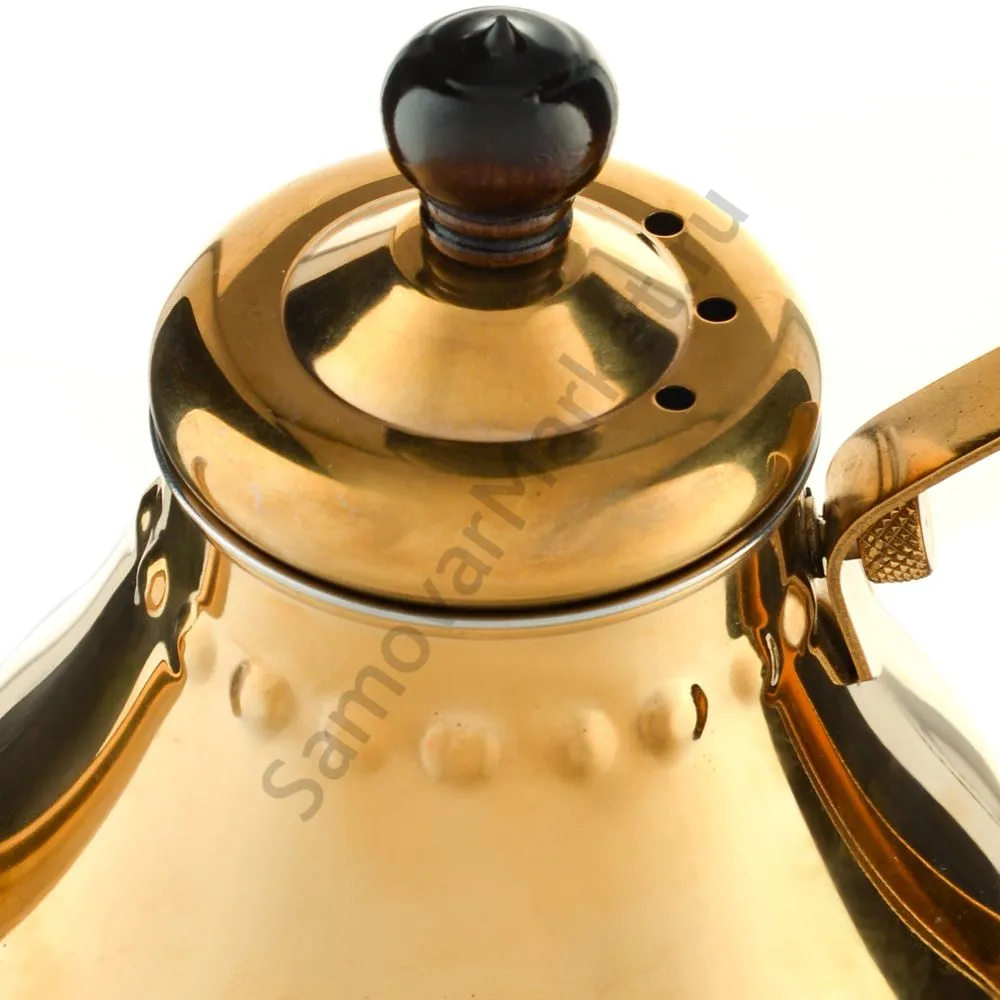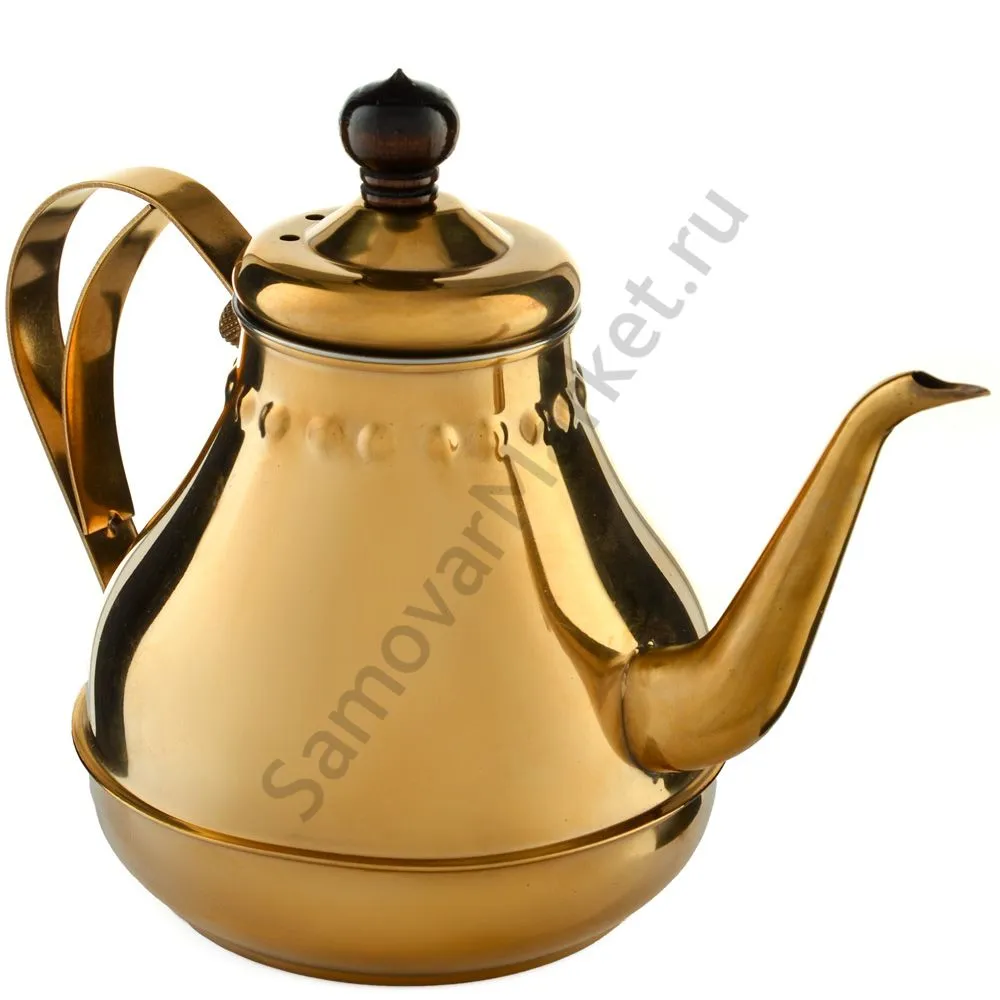 Чайник заварочный 1 литр фигурный с деревянной фурнитурой, золотистый