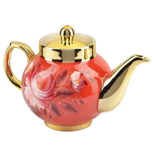 Чайник заварочный для самовара с художественной росписью «Пионы на красном в золоте»
