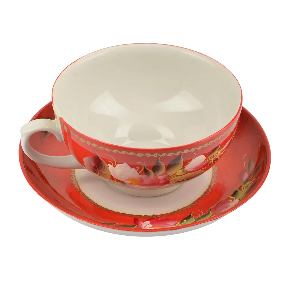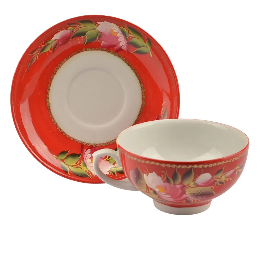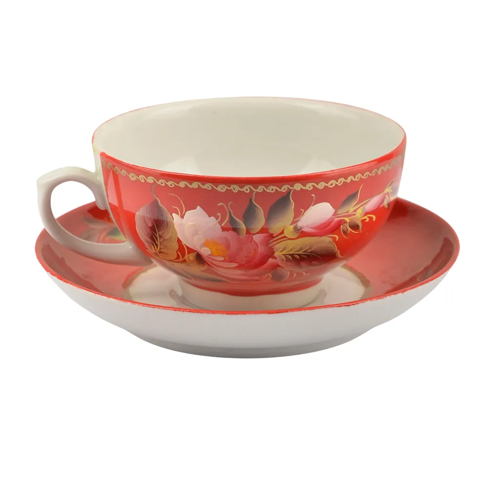 Изделие Дулевского фарфорового завода, завода, качество продукции которого проверено годами. Нами отбираются чайники, сахарницы, кружки и тарелки, которые наилучшим образом подходят по размеру и форме к самоварам. Далее они декорируются в цвет самоваров жаропрочными материалами.