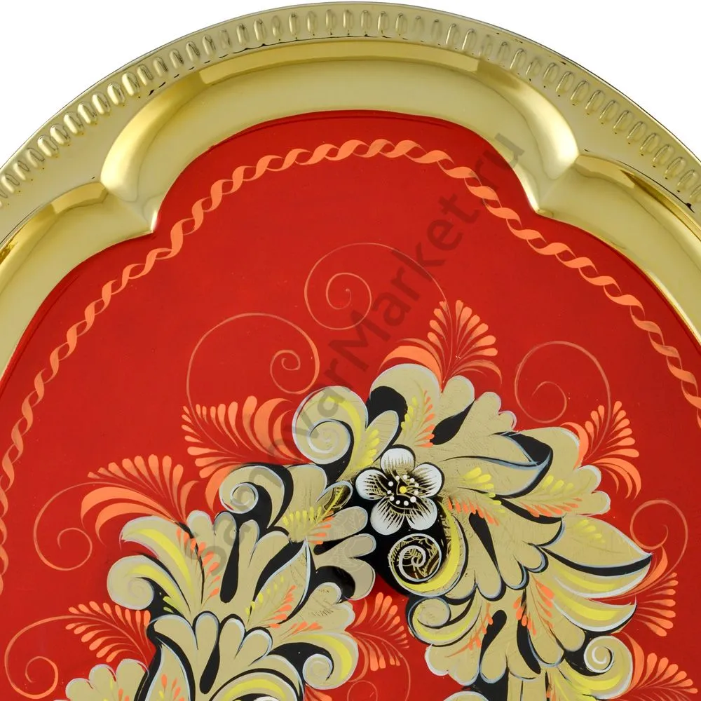 Поднос для самовара с художественной росписью «Кудрина красная»