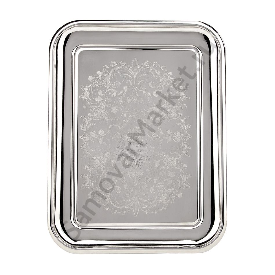 Поднос для самовара прямоугольный с гравировкой, серебристый