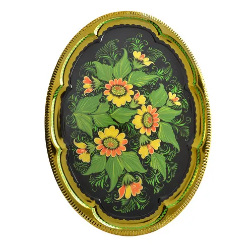 Подносы изготовлены из нержавеющей стали и расписаны вручную специальными жаропрочными красками. Поэтому роспись может немного отличаться. Отлично сочетается с самоваром с аналогичной художественной росписью и прекрасно дополняют его. Поднос служит не только декоративной цели, но и защищает стол от царапин и воды. Поднос из нержавеющей стали, расписан тульскими мастерами вручную! Оптимальный размер и форма для электрического самовара объемом до 4 кг!